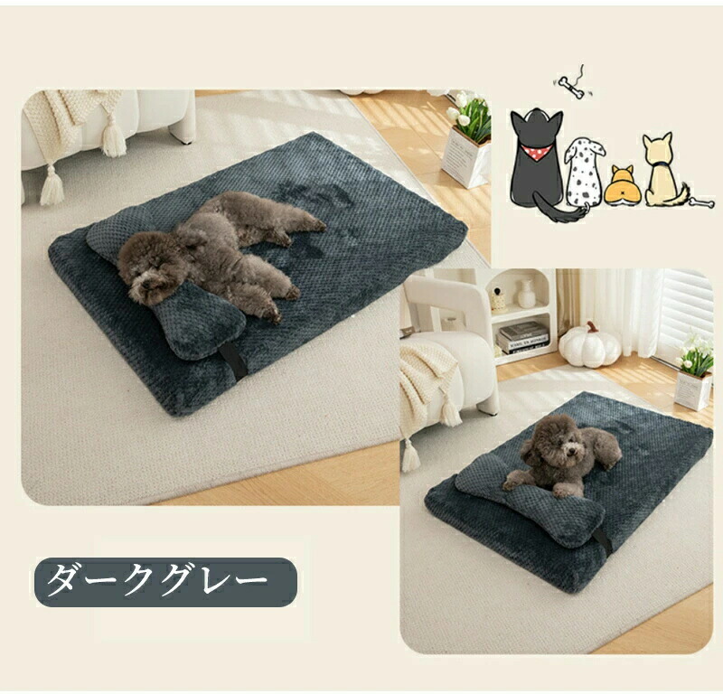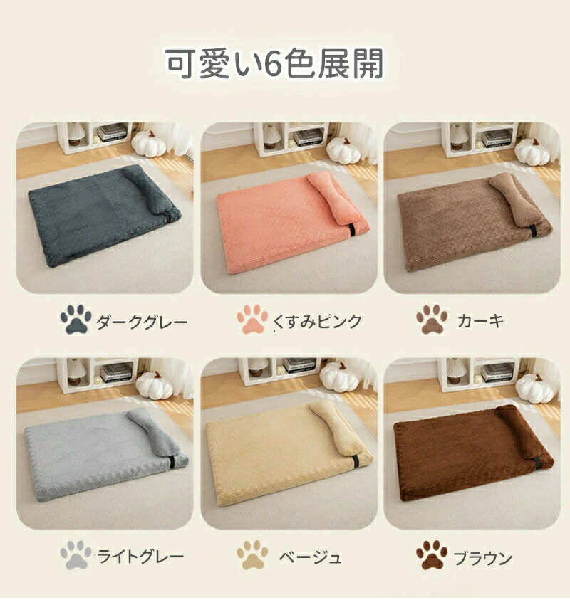 ペットベッド 枕付き ペットマット 猫 ペット ペットグッズ 豊富な品揃え ライトグレー ダークグレー ベージュ カーキ ブラウン ピンク S-45X30X5CM M-50X40X6CM L-75X50X6CM XL-100X65X8CM 2XL-120X80X8CM