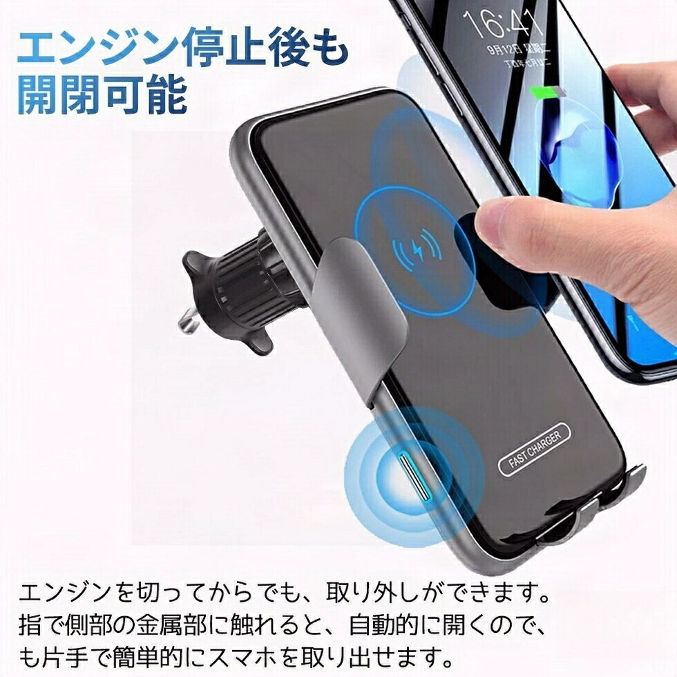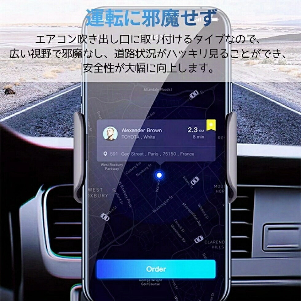 車載ホルダー ワイヤレス充電 自動開閉 360度回転 車用充電器 ワイヤレス充電器 一秒着脱 15W急速充電 過熱保護 エンジン停止後も開閉 エアコン吹き出し口 片手着脱 qi対応 車載ワイヤレス充電
