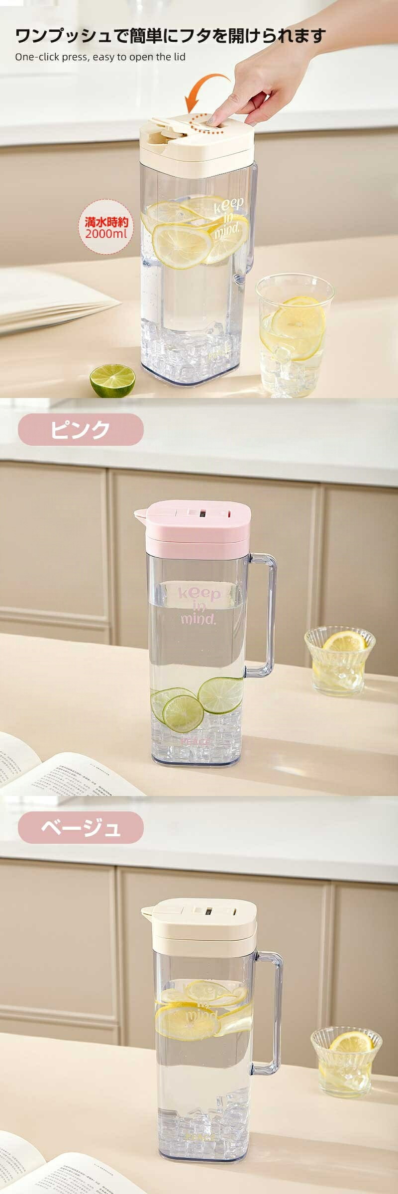 ウォーターピッチャー お茶 ボトル 冷 キッチン用品 食器 調理器具 豊富 ピンク ベージュ