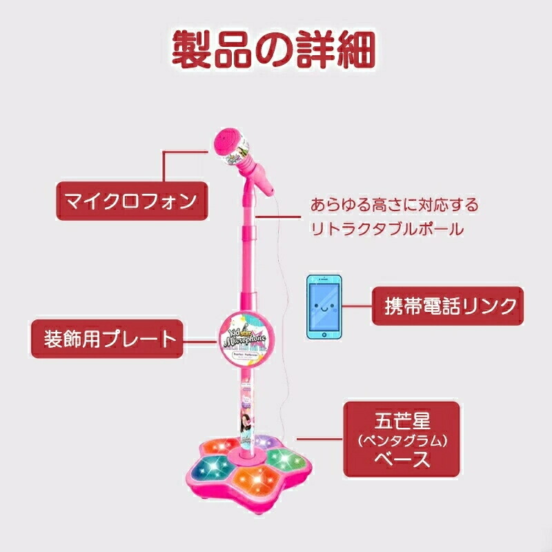 キッズスタンドマイク カラオケ 子供用 おもちゃ ゲーム 人気 ブルー ブラック ピンク