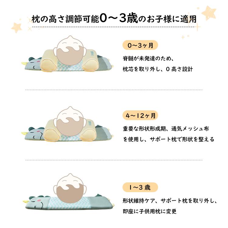 ベビー記憶綿枕 定型枕 0~3歳の赤ち ベビー 寝具 ベッド ベビー枕 特集 グリーン ピンク