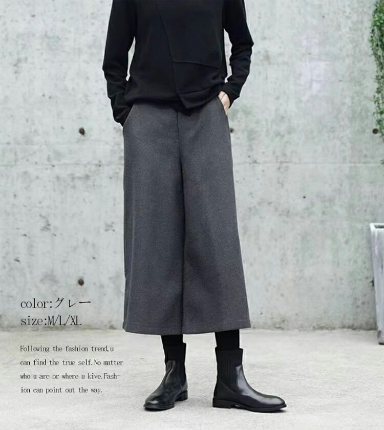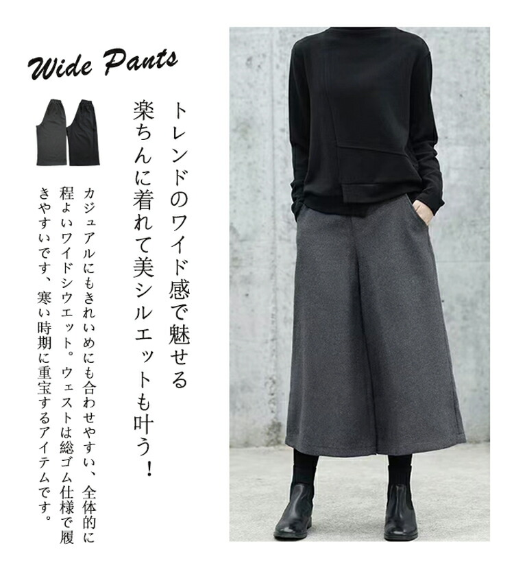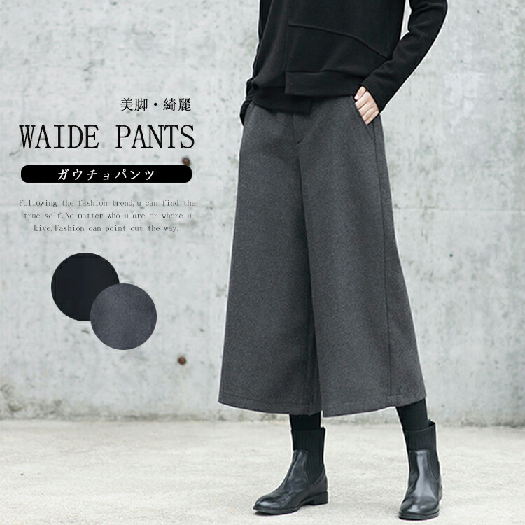 ウール調 ガウチョパンツ 秋冬 キュロ レディースファッション 早い者勝ち M L XL ブラック グレー