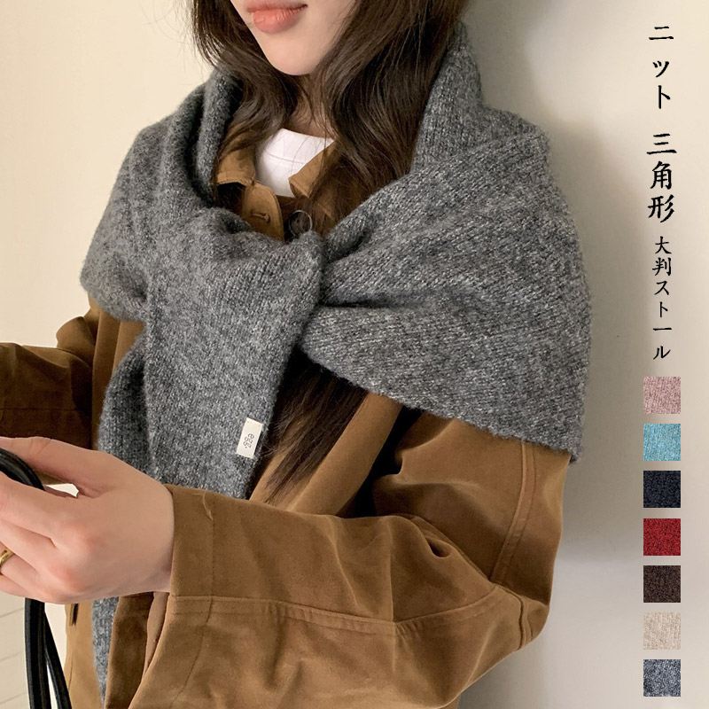 ストール レディース ニット 三角形 バッグ 小物 ブランド雑貨 人気 ピンク ブルー ブラック レッド コーヒーカラー ベージュ グレー