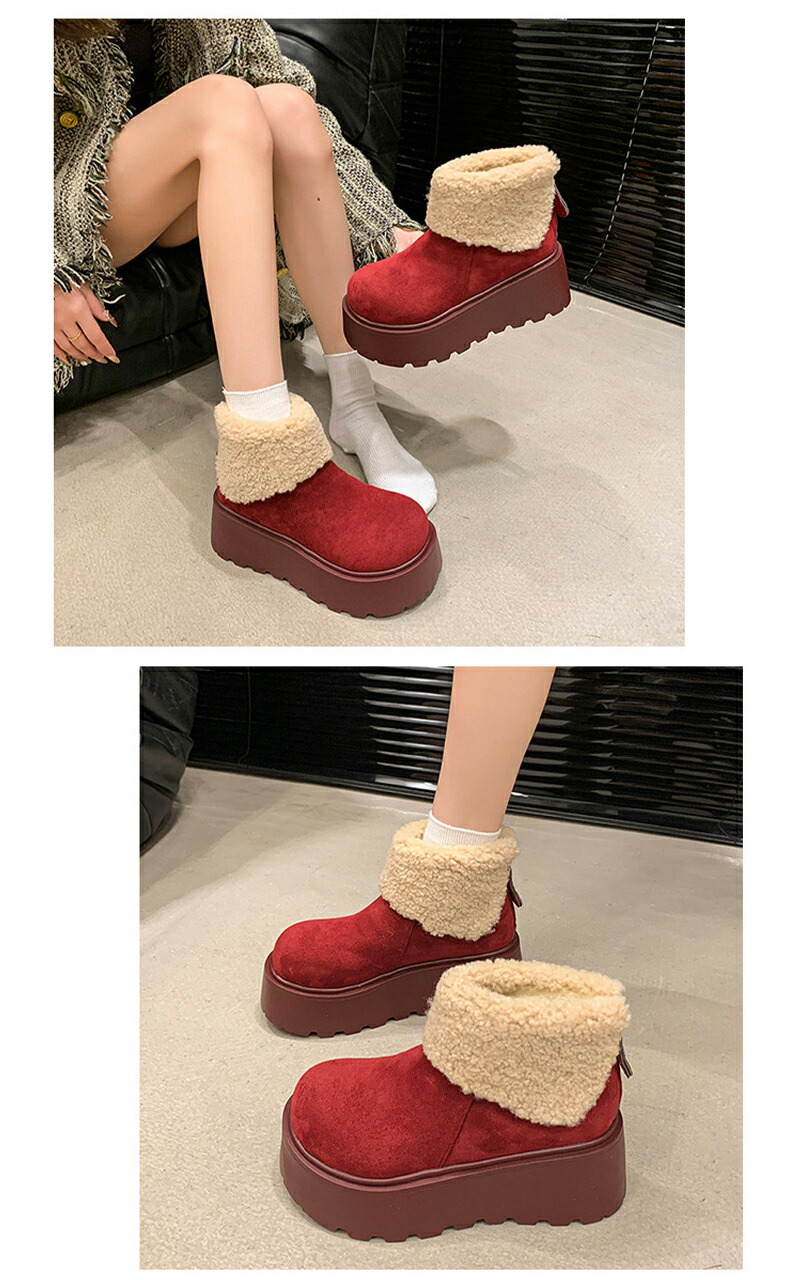 ショートブーツ 厚底7cm スエード 靴 早い者勝ち ブラウン カーキ レッド 22.5 23.0 23.5 24.0 24.5 25.0