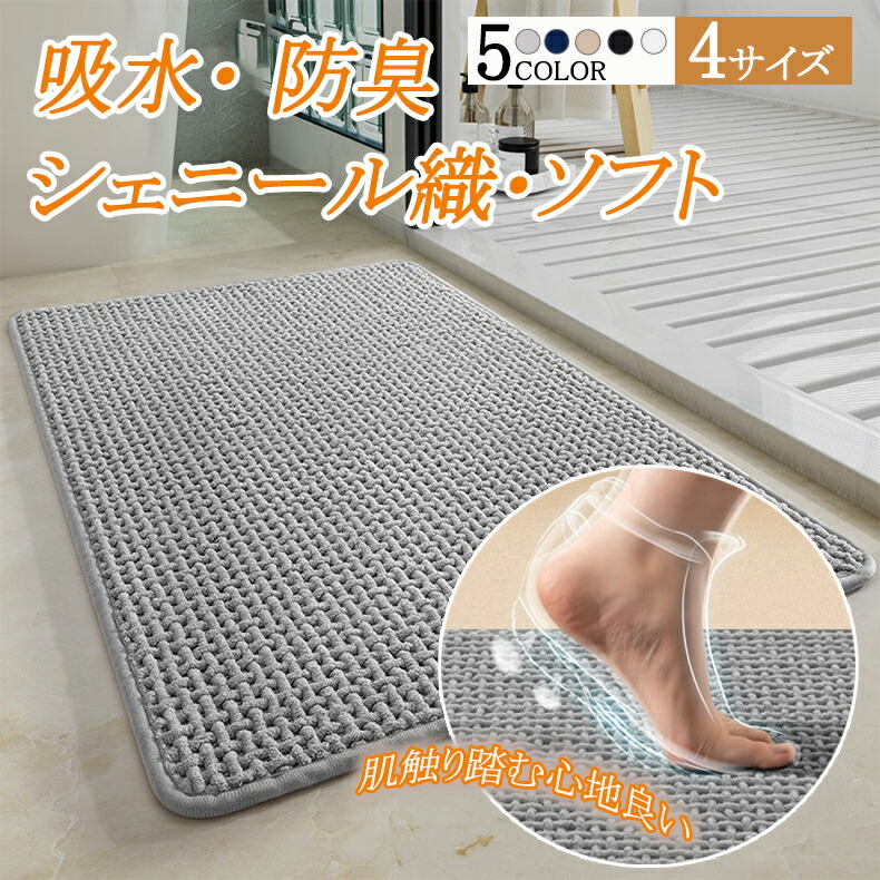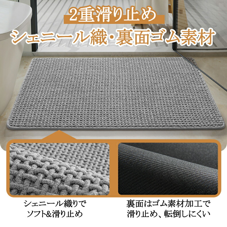 バスマット 大判 吸水 速乾 お風呂マット 滑り止め 乾度良好 マイクロファイバー シェニール織 足拭きマット 抗菌 防臭 ふわふわ 厚手 快適 浴室マット 洗える マット おしゃれ 丸洗い 洗面所