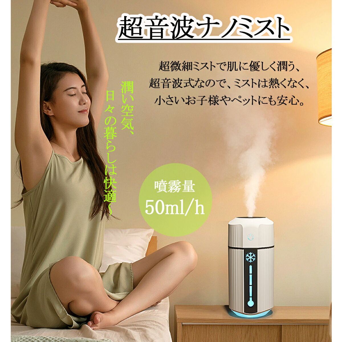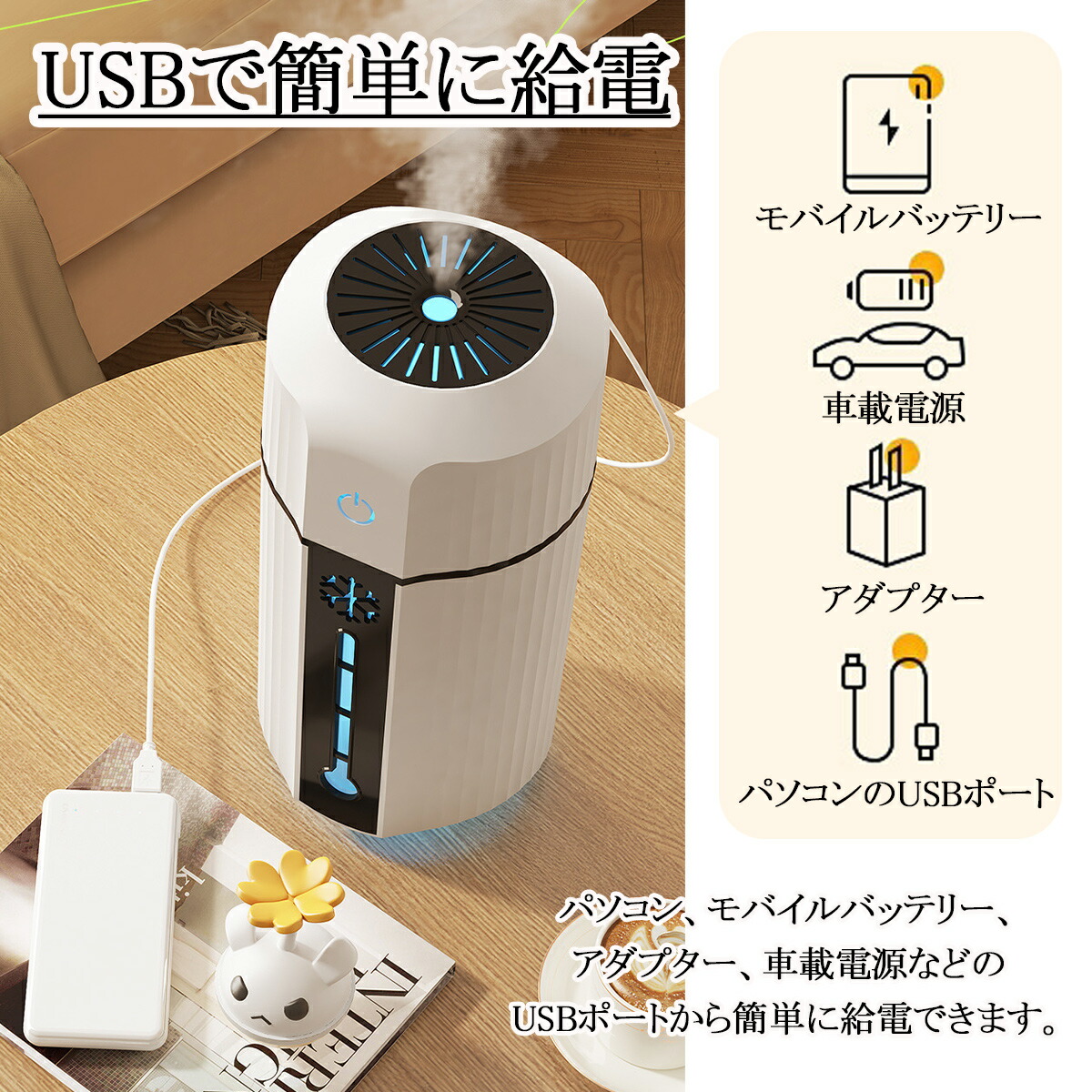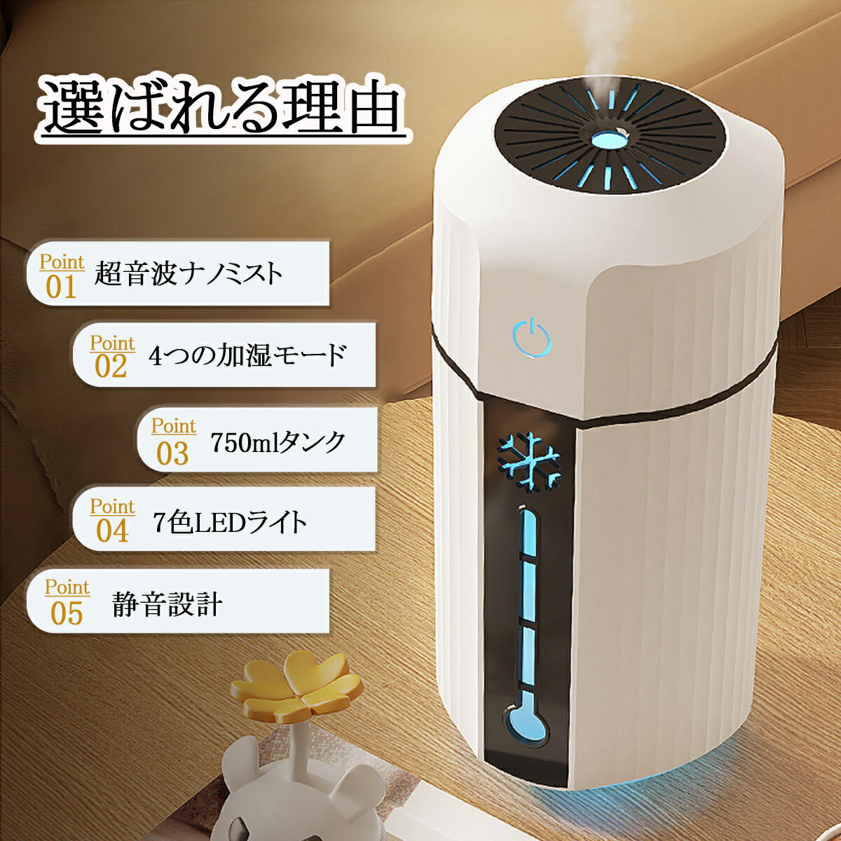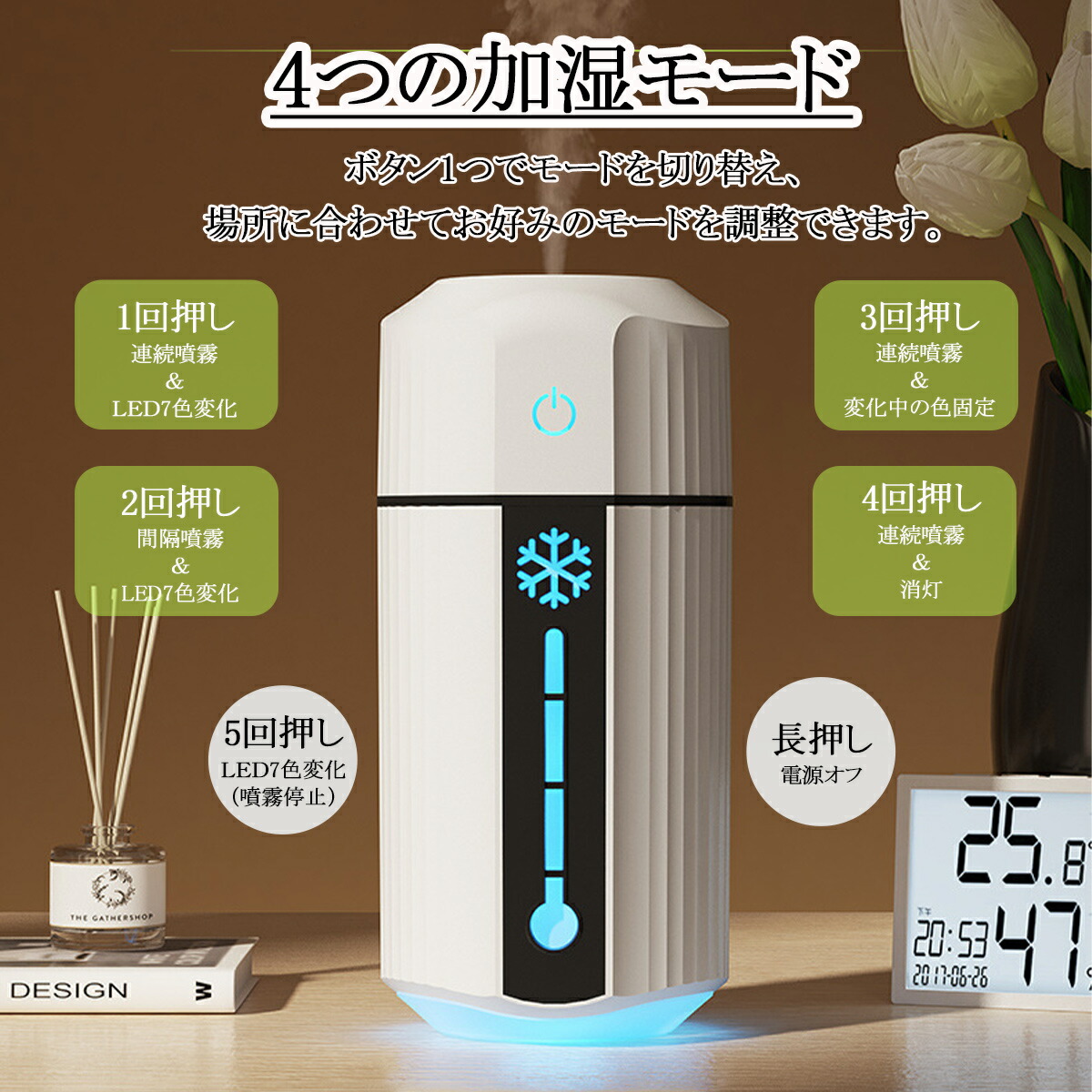 加湿器 卓上 小型 大容量 LEDライ