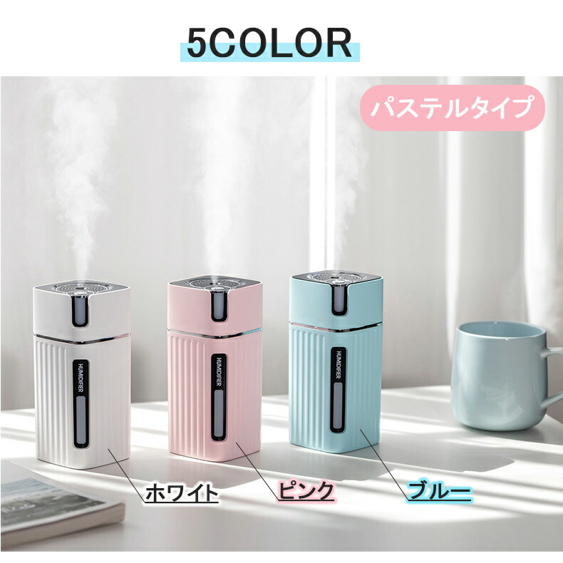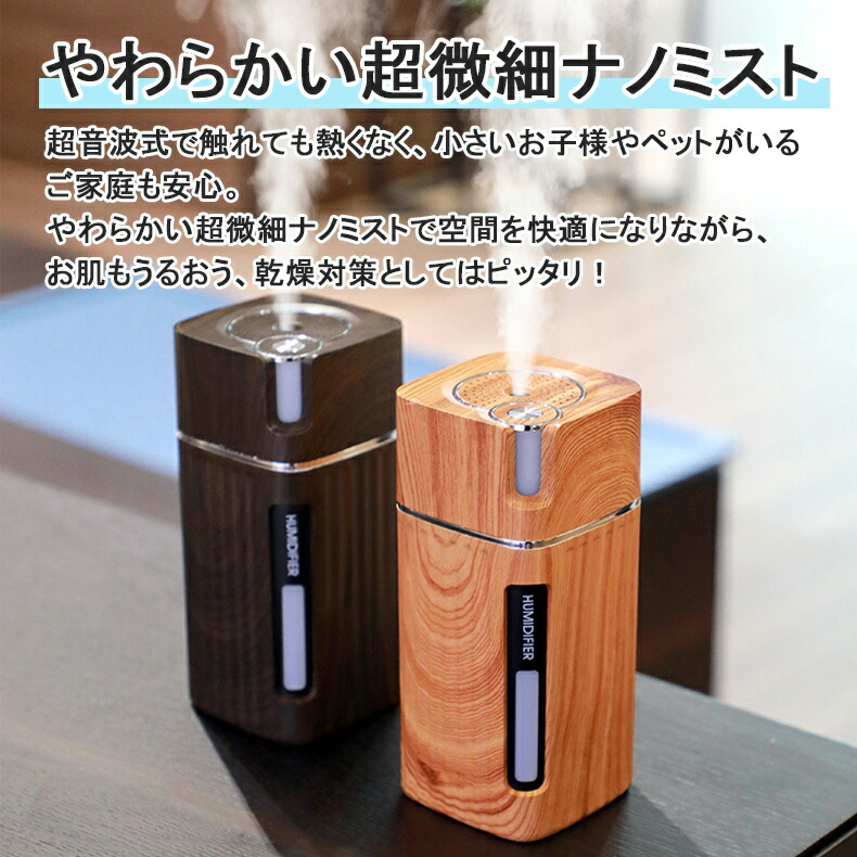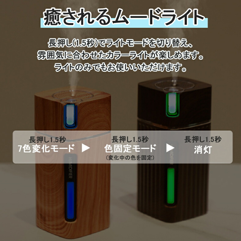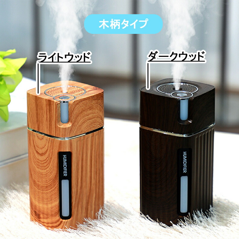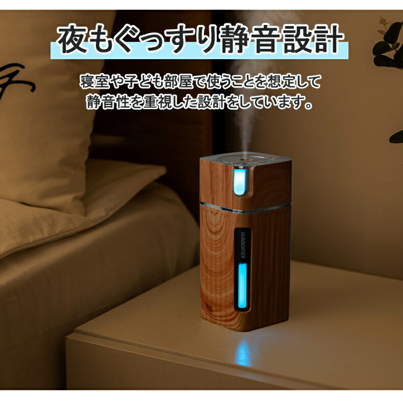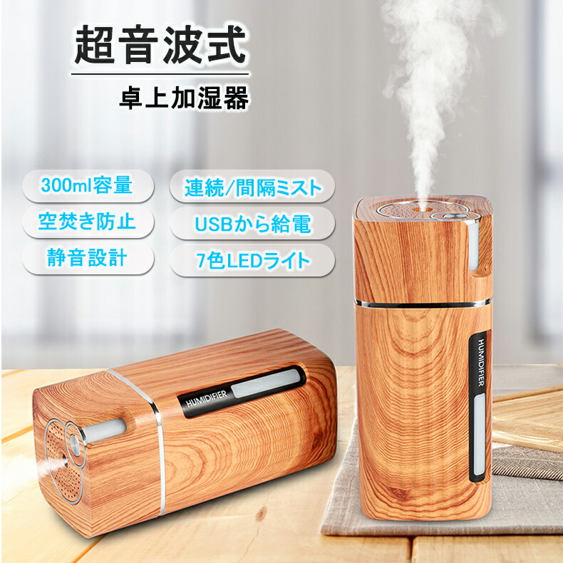 加湿器 卓上 LEDライト USB 3 ライトウッド ダークウッド ホワイト ピンク ブルー