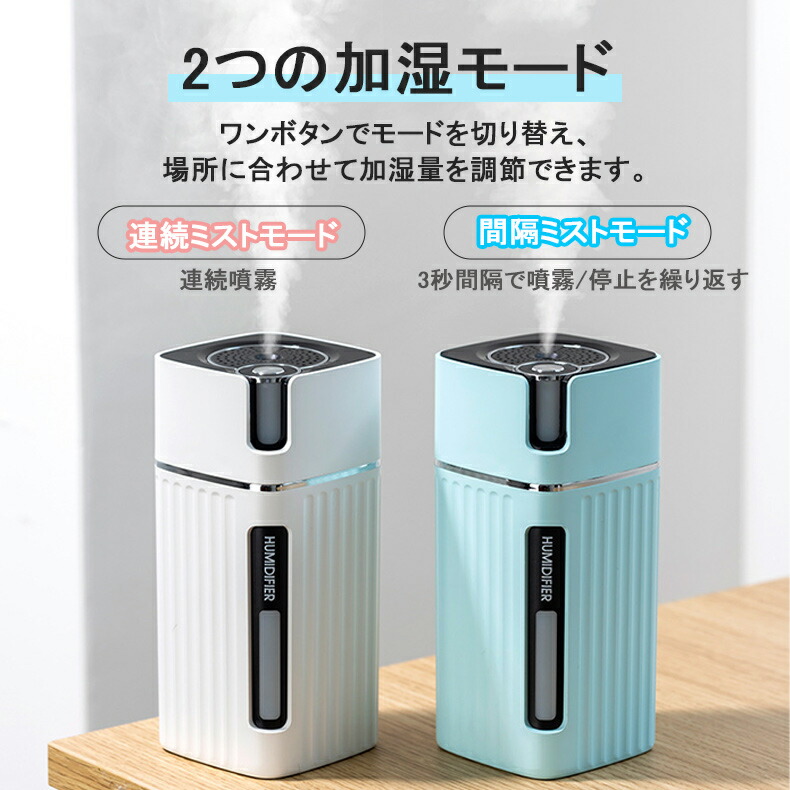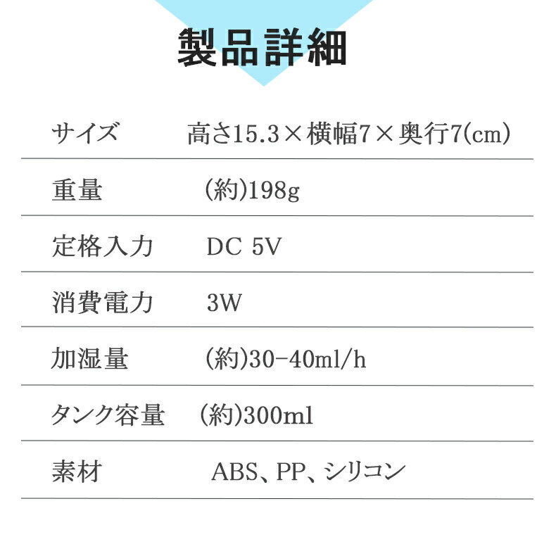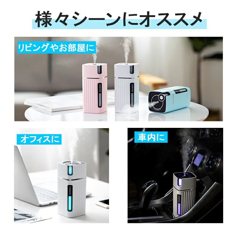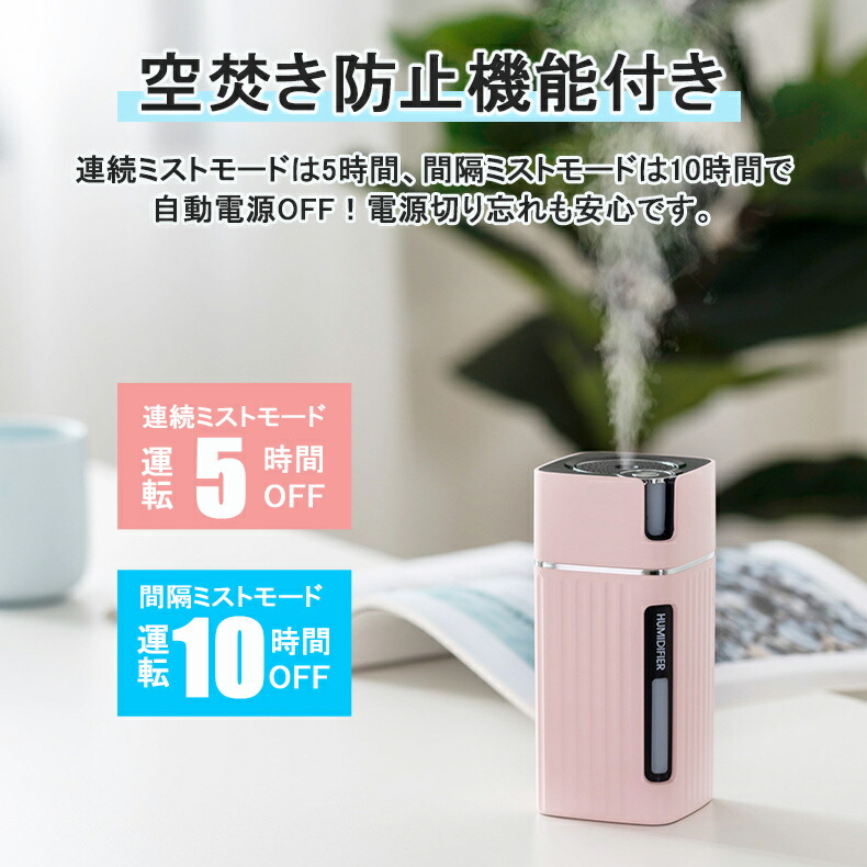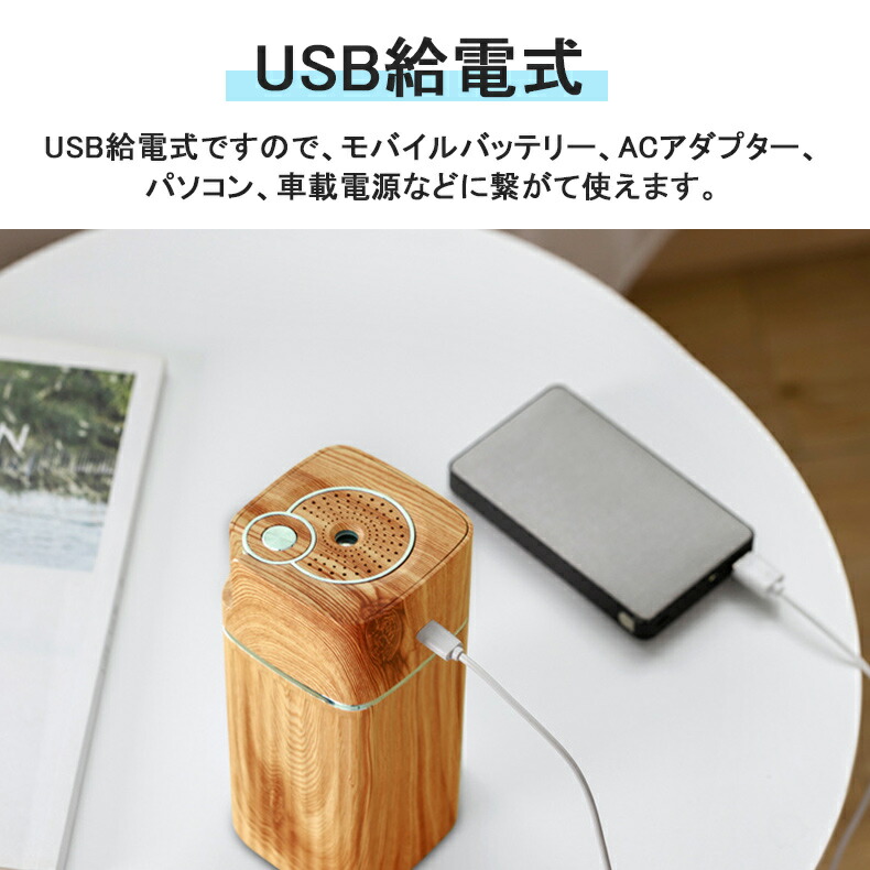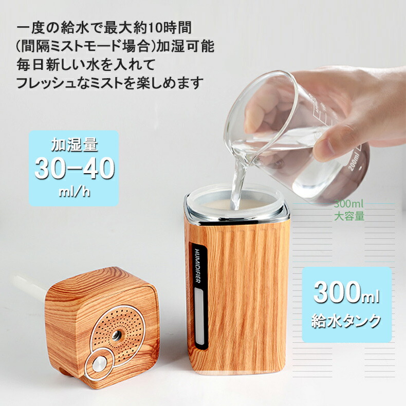 加湿器 卓上 LEDライト USB 3 ライトウッド ダークウッド ホワイト ピンク ブルー