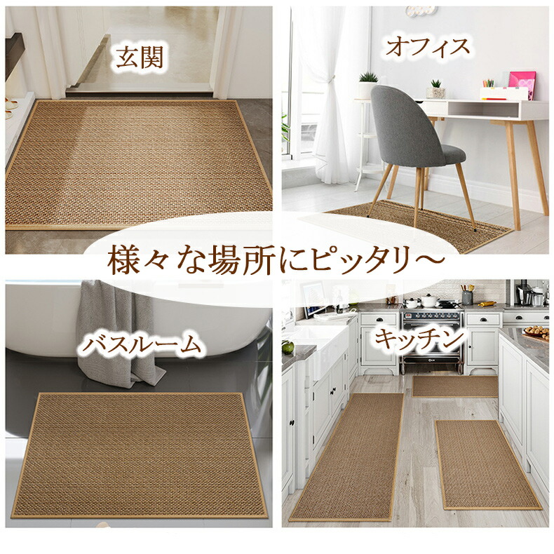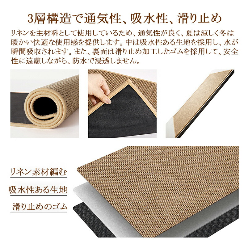 キッチンマット 編む リネン素材 亜麻 玄関マット 台所マット 洗面台用 洗える 北欧 おしゃれ 厚手 シンプル マット 滑り止め オールシーズン 抗菌防臭 厚さ 床暖房対応