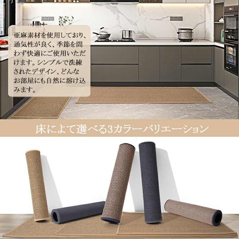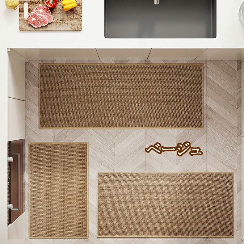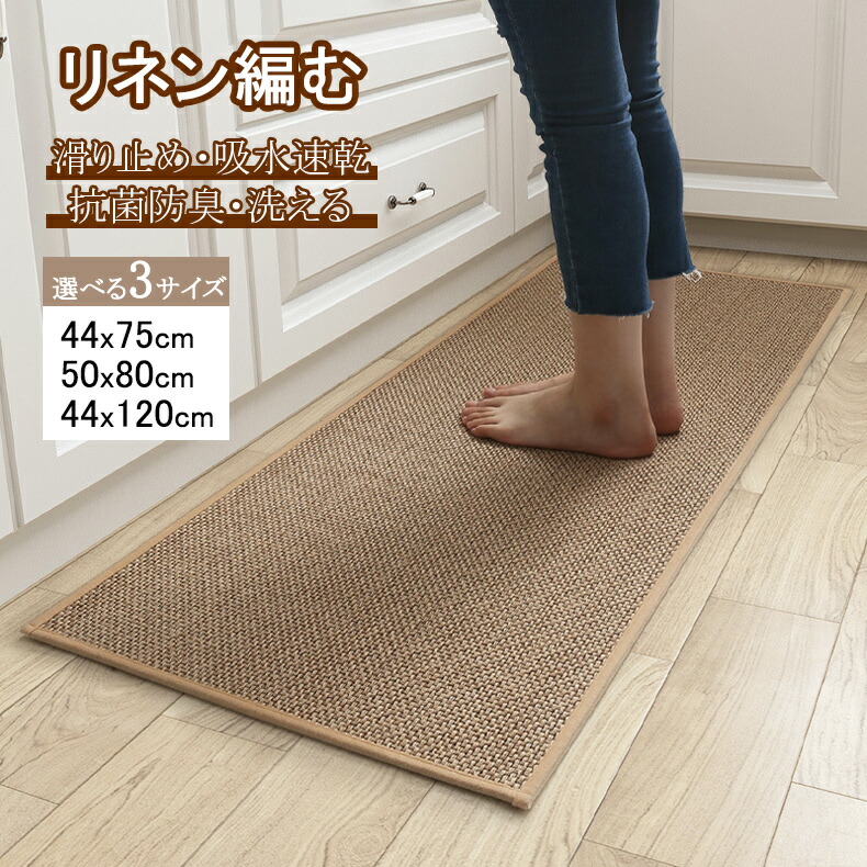 キッチンマット 編む リネン素材 亜麻 キッチン用品 食器 調理器具 特集 44x75cm 50x80cm 44x120cm ベージュ グレー ダークグレー