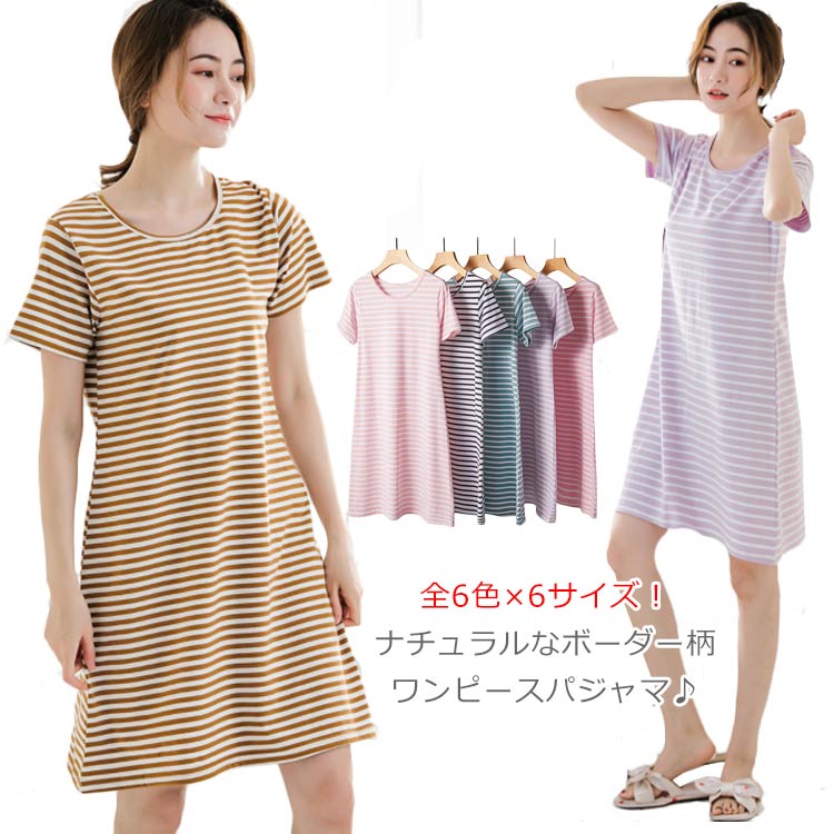 パジャマ ワンピース レディース らく レディース ナイトウェア ルームウェア パジャマ 大人気! (ピンク*白) (グリーン*白) (パープル*白) (オレンジ*白) (ブラウン*白) (ブラック*白) M L XL 2XL 3XL 4XL