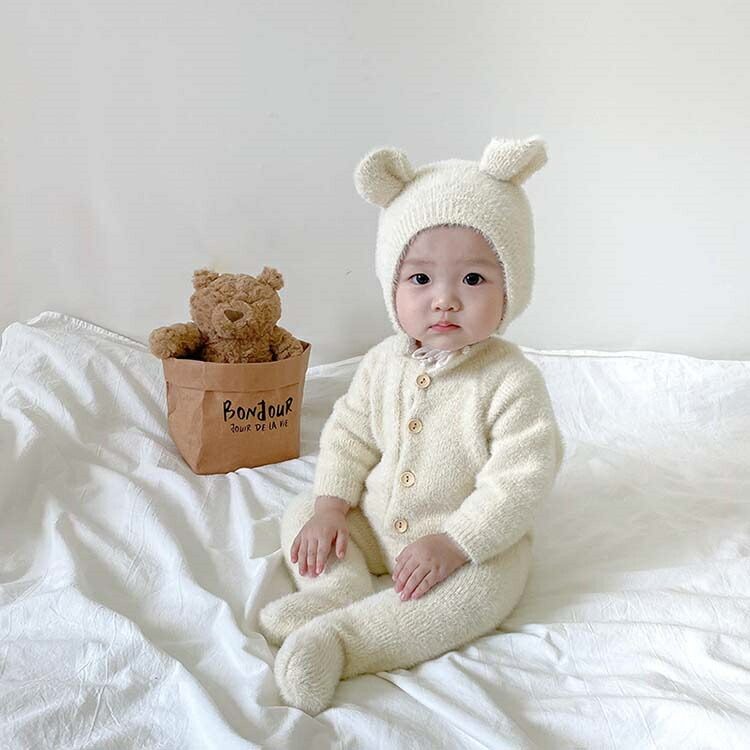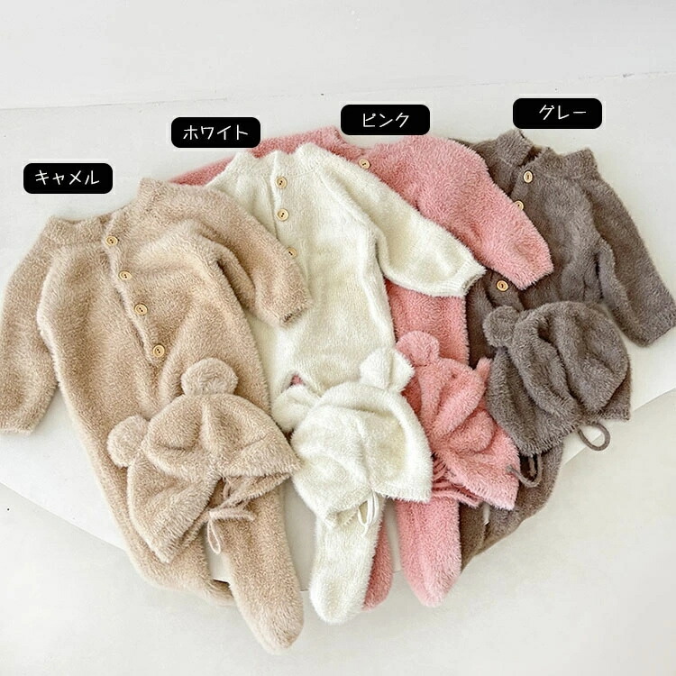 くまちゃん 着ぐるみ 熊耳 ロンパース ベビー ベビー服 ファッション カバーオール ロンパース 特集 キャメル ホワイト グレー ピンク 66 73 80 90 100
