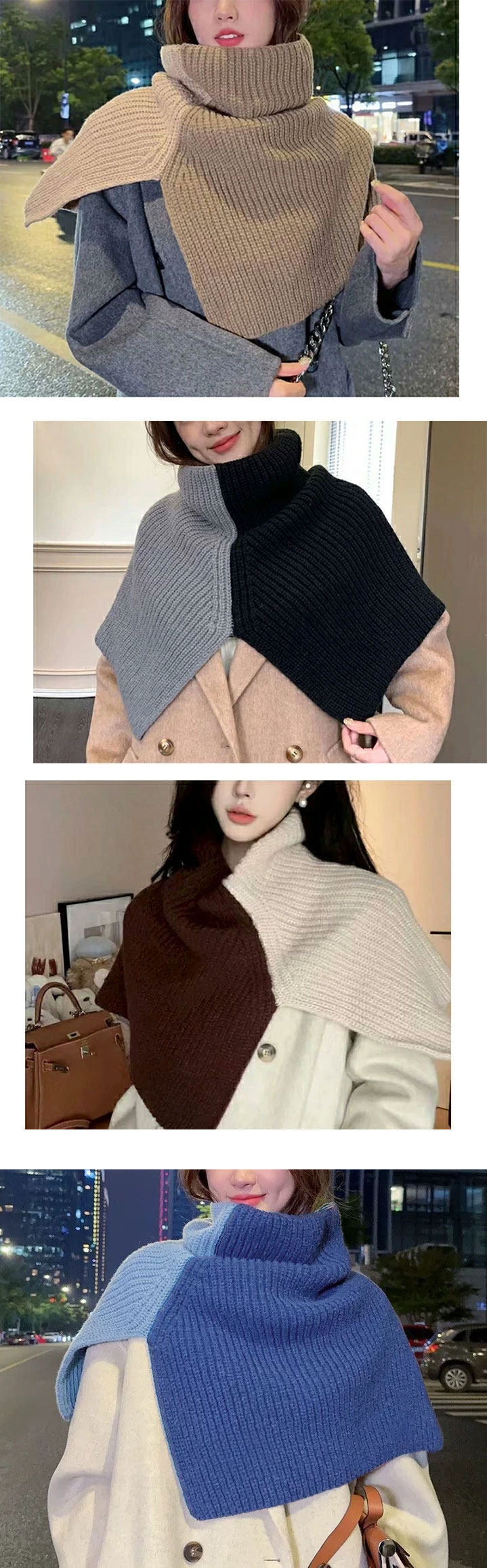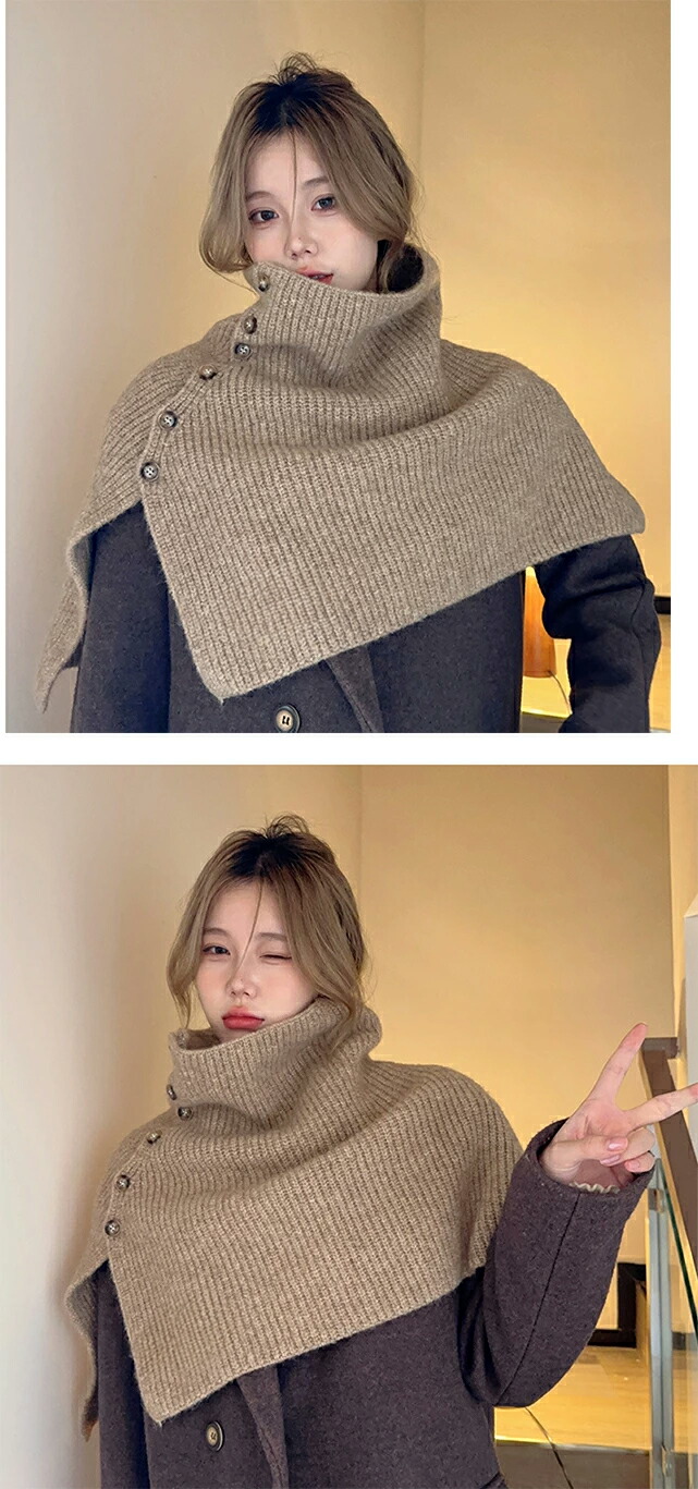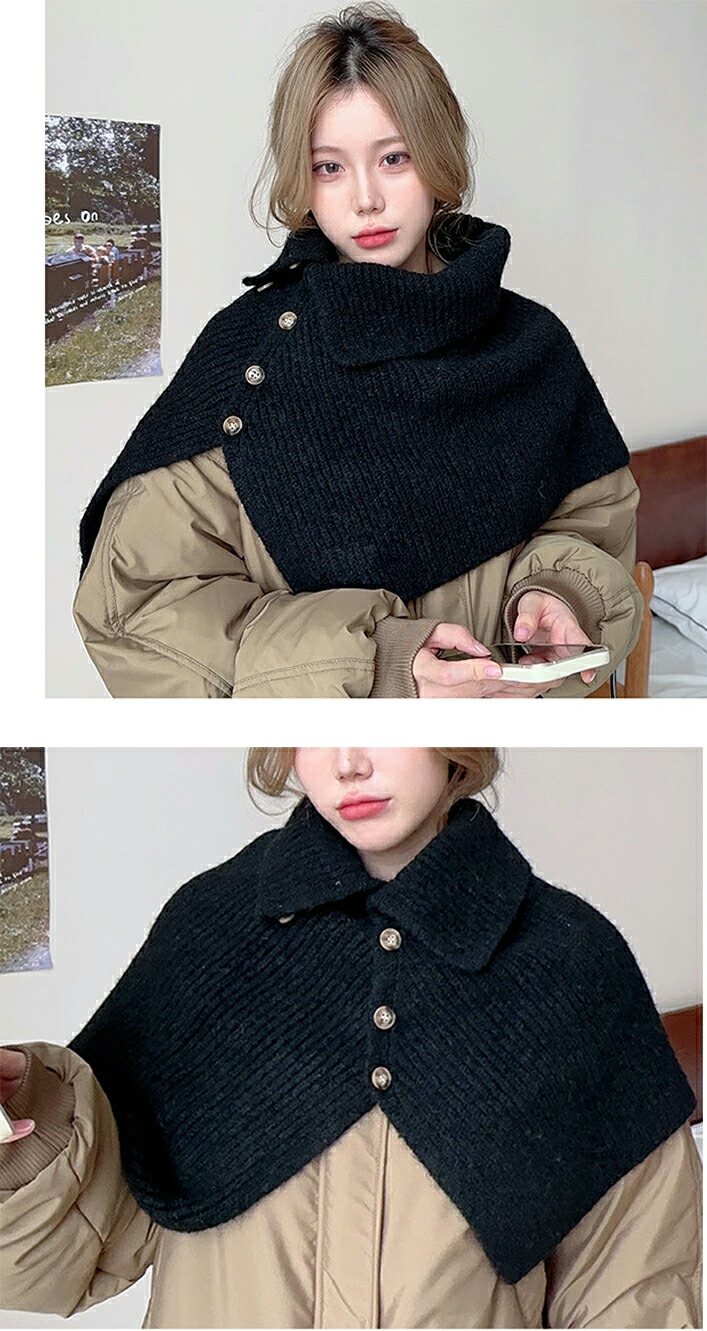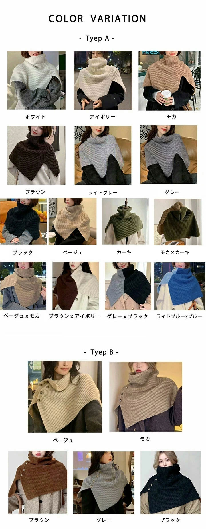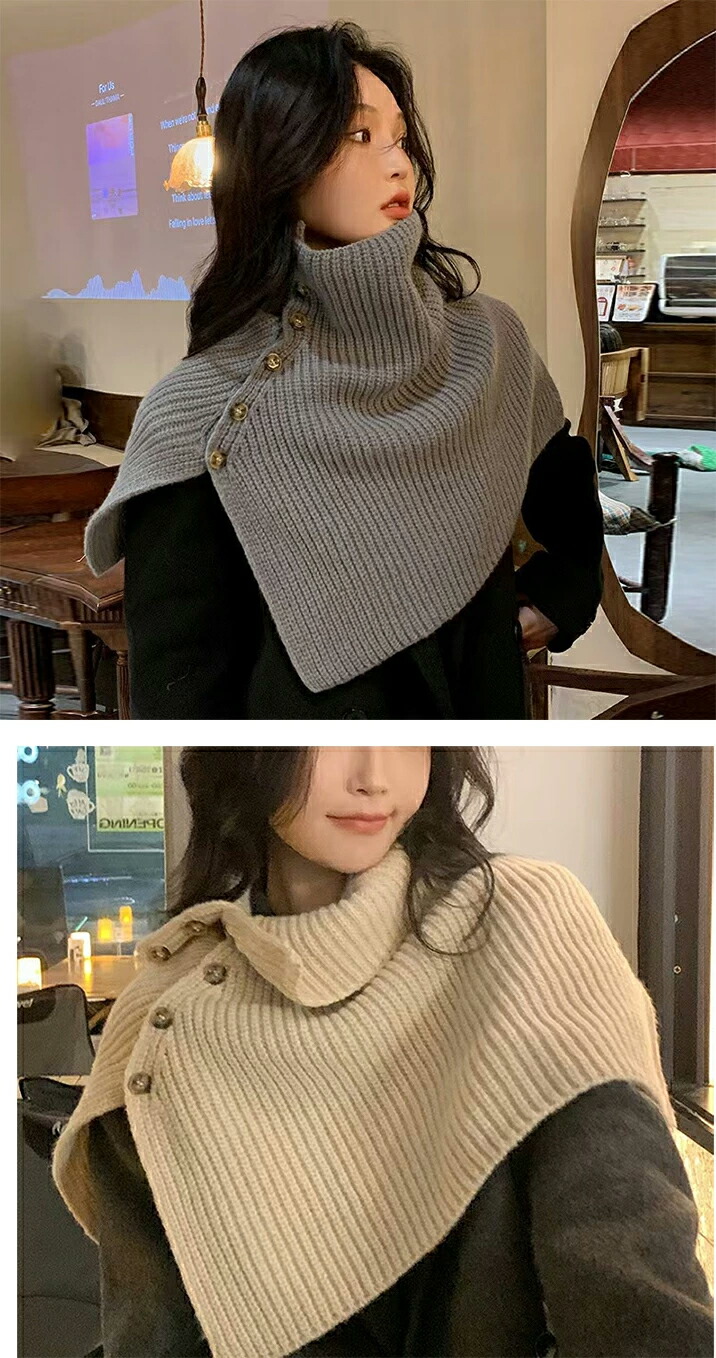 ニットスリットポンチョ3A33 2ター マフラー スカーフ ネックウォーマー スヌード 新登場! Type A(ボタンなし) Type B(ボタンあり) ホワイト アイボリー モカ ブラウン ライトグレー グレー ブラック カーキ ベージュ ベージュxモカ ブラウンxアイボリー グレーxブラック モカxカーキ ブルー×ライトブルー