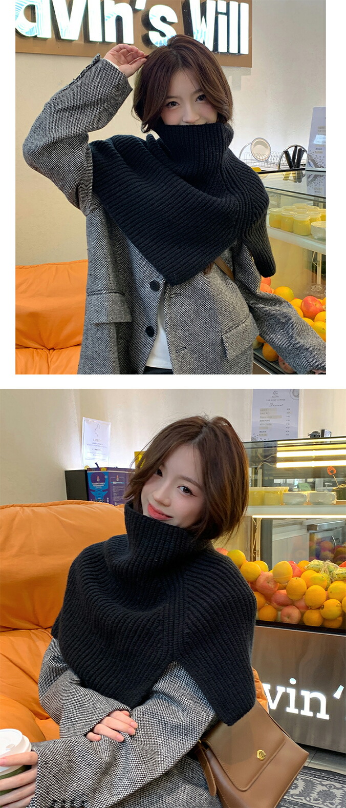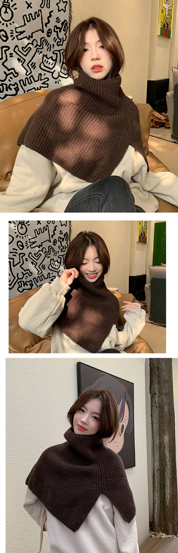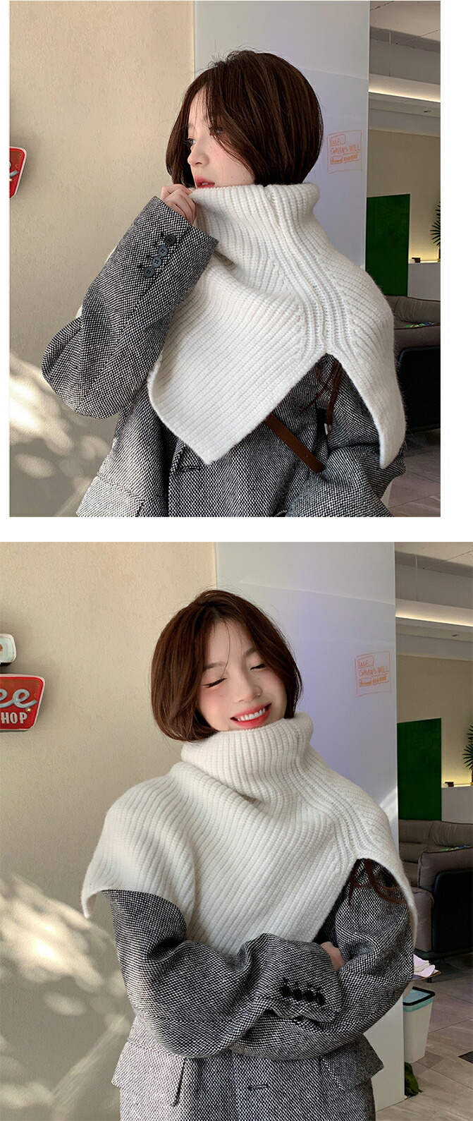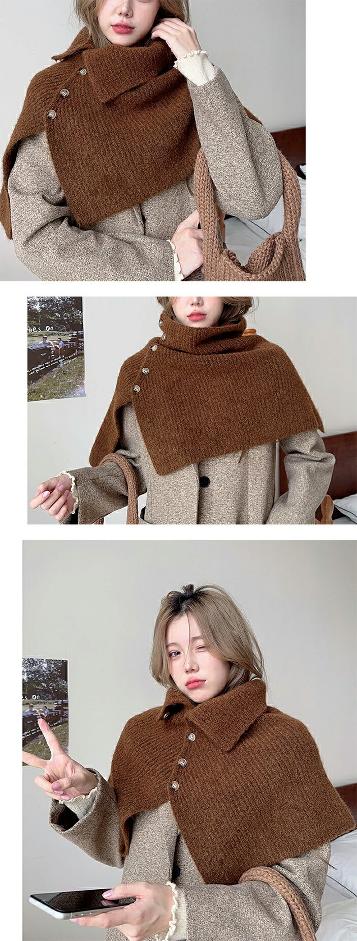 ニットスリットポンチョ3A33 2ター マフラー スカーフ ネックウォーマー スヌード 新登場! Type A(ボタンなし) Type B(ボタンあり) ホワイト アイボリー モカ ブラウン ライトグレー グレー ブラック カーキ ベージュ ベージュxモカ ブラウンxアイボリー グレーxブラック モカxカーキ ブルー×ライトブルー