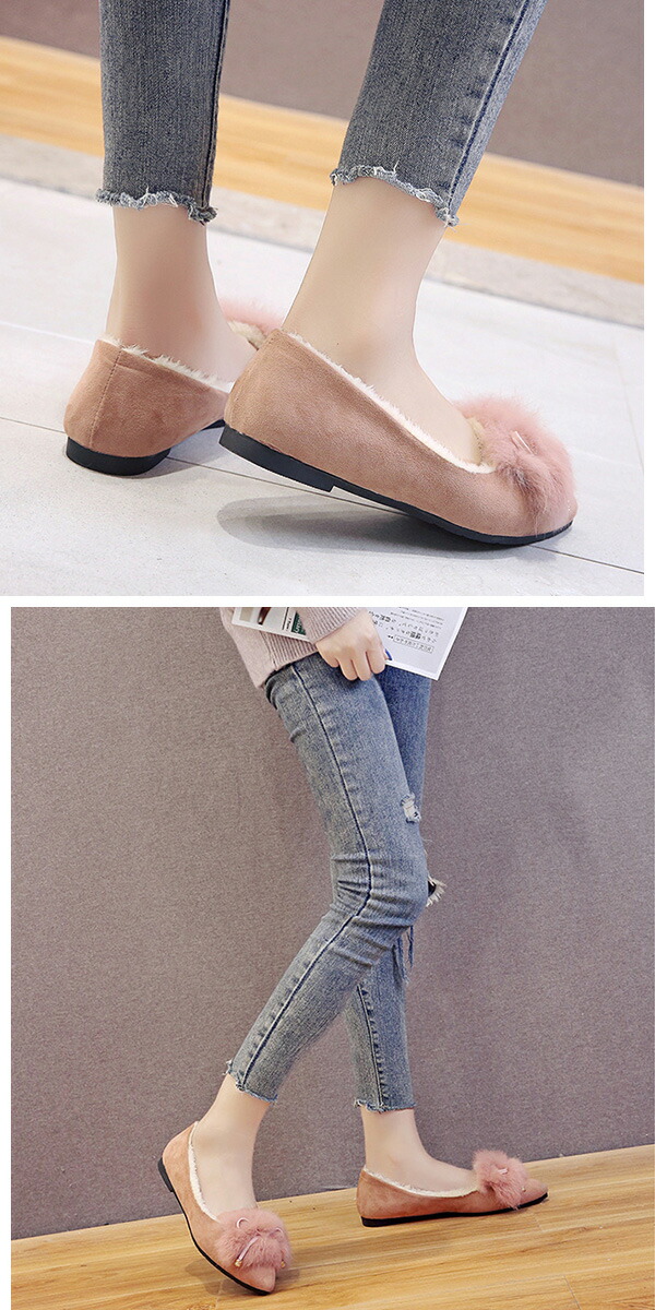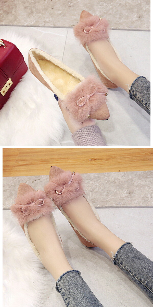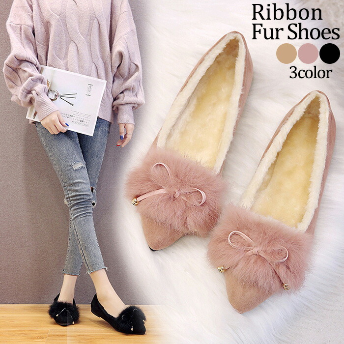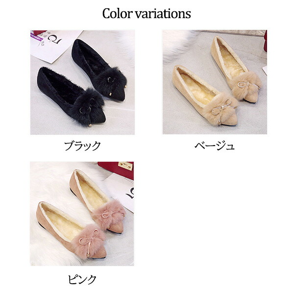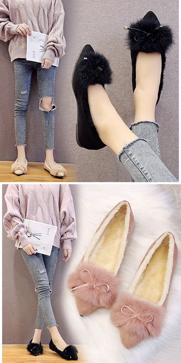 1A15裏起毛あったかリアルラビットフ レディース靴 モカシン 新登場! 36 37 38 39 ブラック ベージュ ピンク