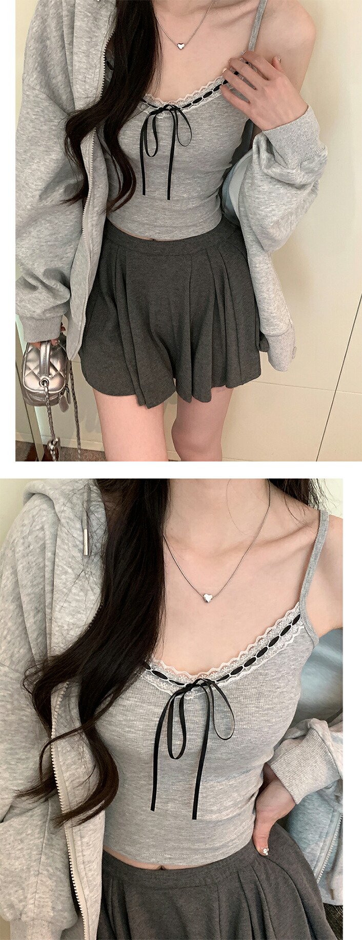 シアースリーブ ドッキングシャツ ボウタイシャツブラウス