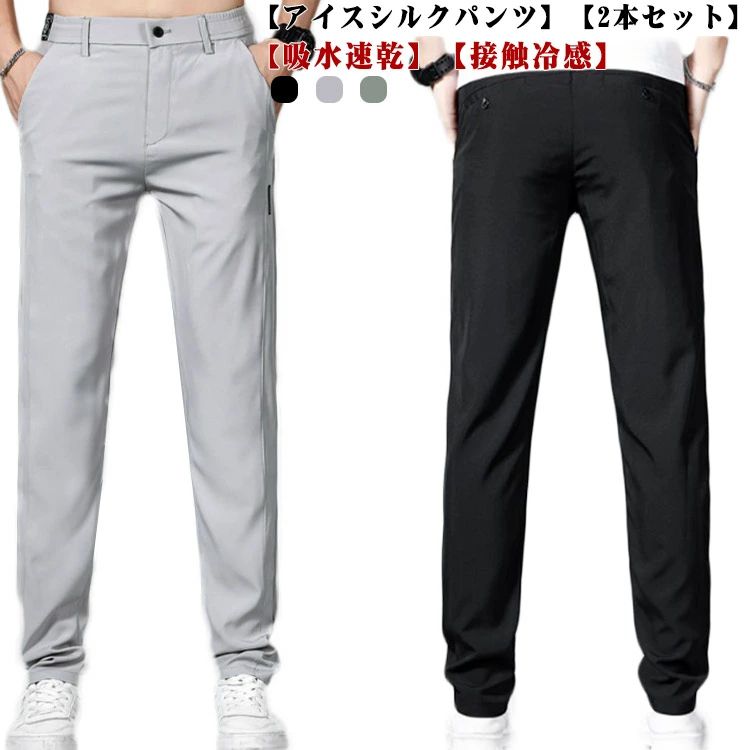 2本セット アイスシルクパンツ メンズ メンズファッション 続々登場 ブラック*2 グレー*ブラック グレー*グリーン グリーン*ブラック 28 29 30 31 32 33 34 36 38