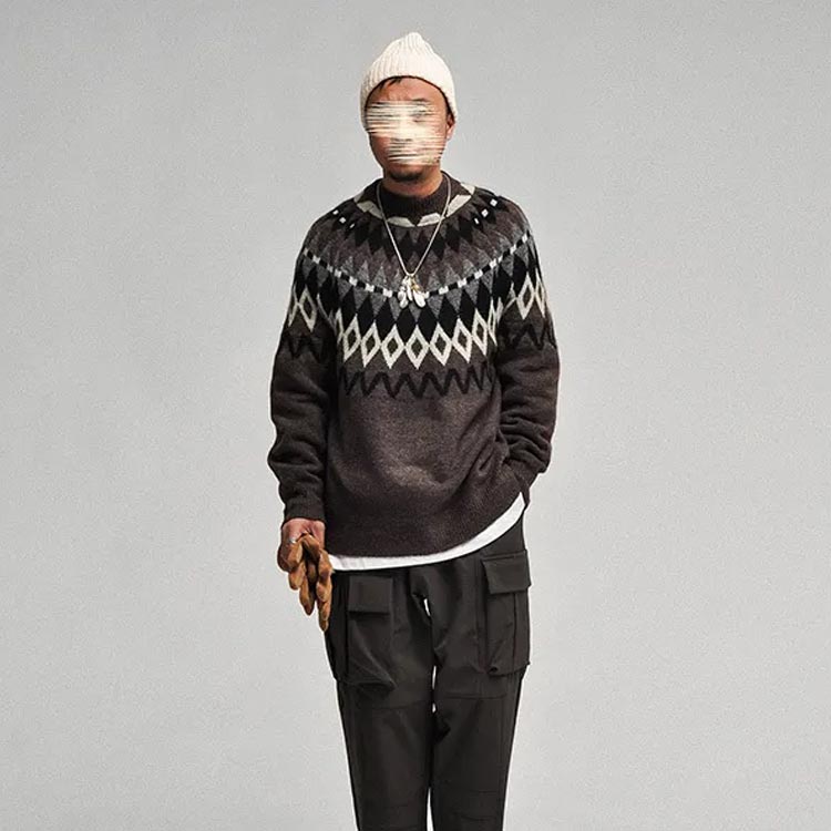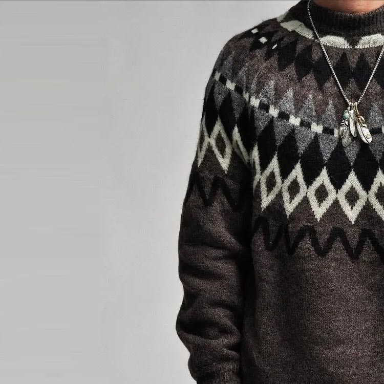 ノルディック柄 メンズ ニット 男 レ トップス ニット セーター 早い者勝ち ダークブラウン ブラック S M L XL 2XL 3XL