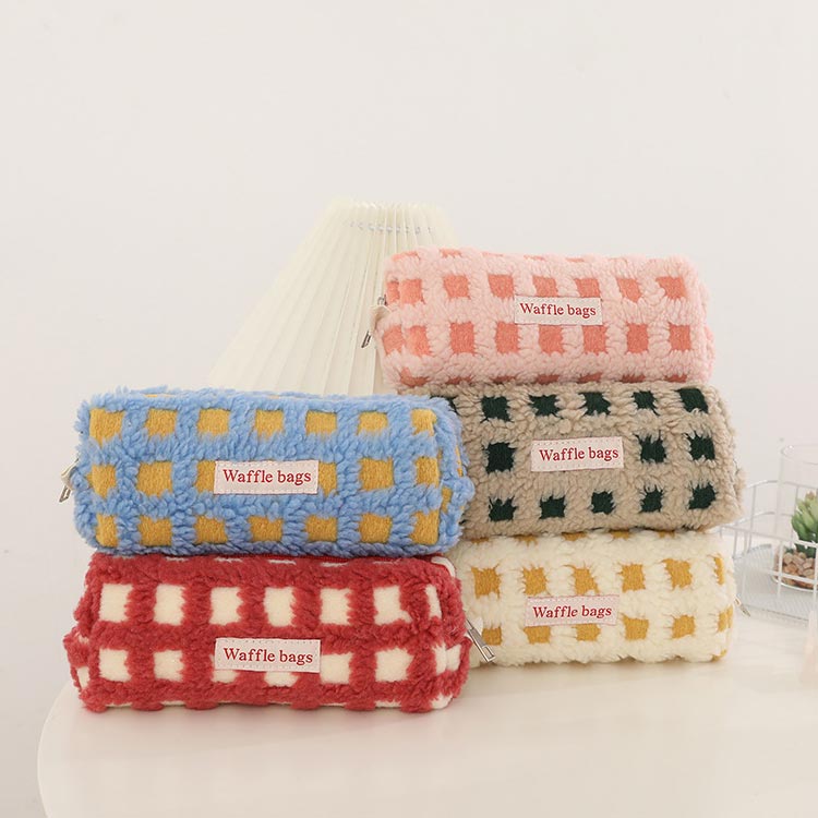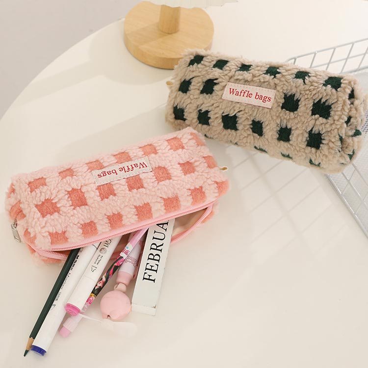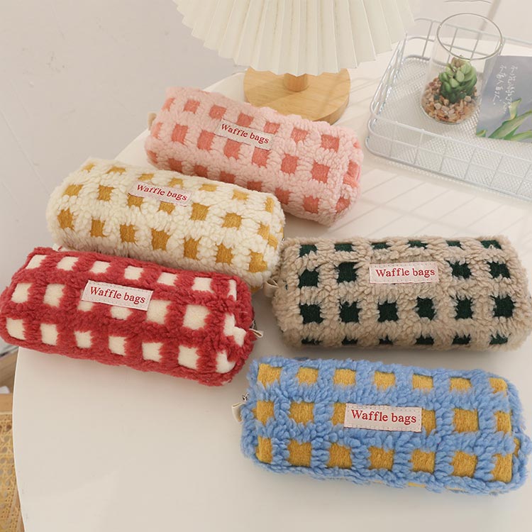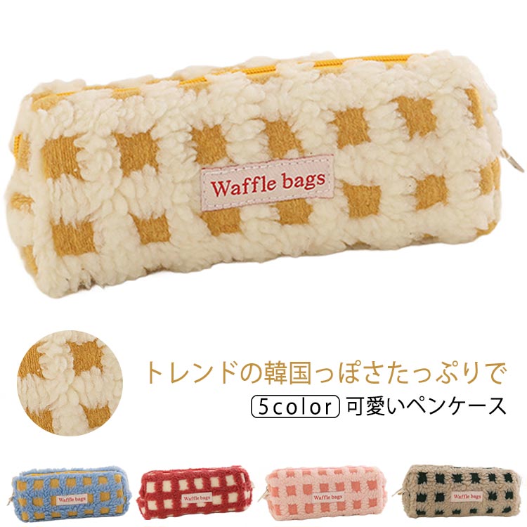 ボアワッフルペンケース 高校生女子 オ 日用品雑貨 文房具 手芸 通販 イエロー グリーン ブルー ピンク レッド