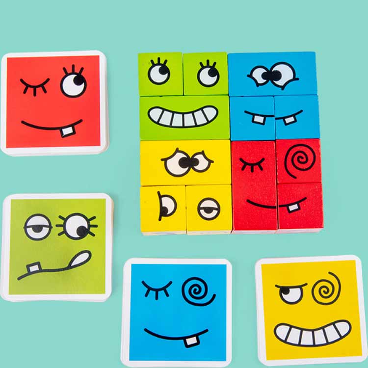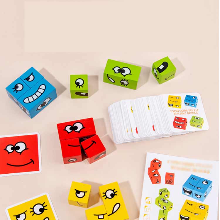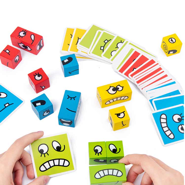顔を変えるブロック 変顔マジックビルディングブロック カードゲーム 子供 6歳 木製ブロックパズル 木製パズル パズルビルディング 贈り物 2~4人のプレーヤーに適用 カラーボックス収納で持 おもちゃ