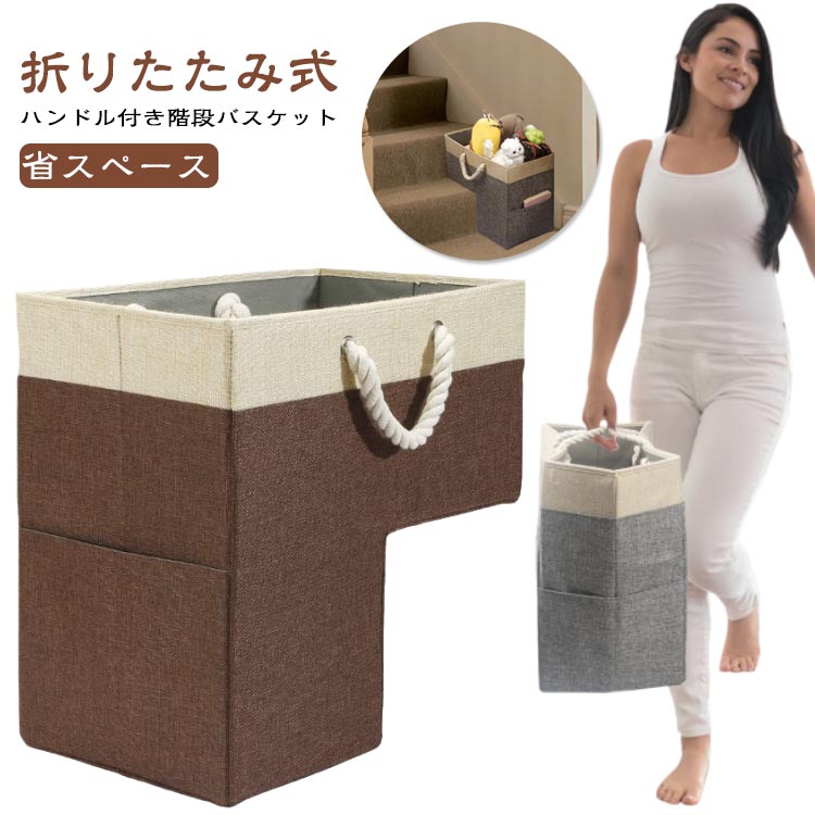 収納ボックス ハンドル付き階段バスケッ グレー ブラウン