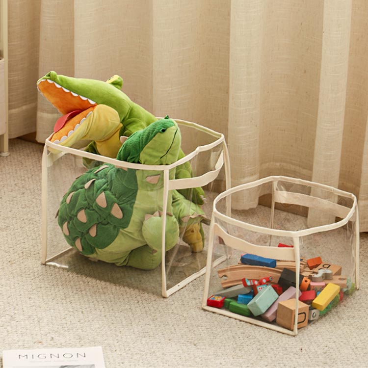 クリア おもちゃ収納 PVC 透明 か 丸型 角型 黒い枠 S L