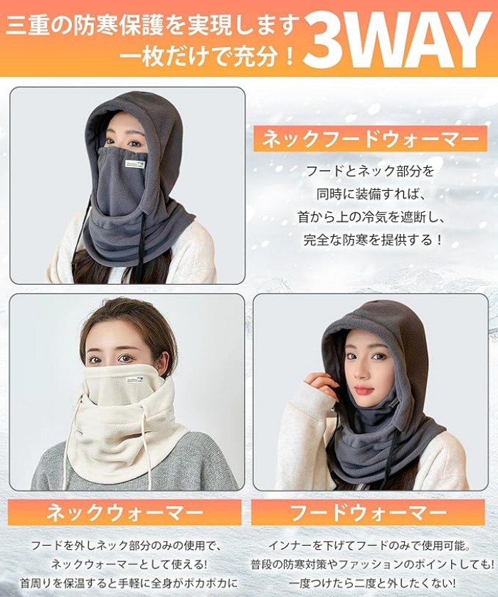 ネックウォーマー レディース 3way カーキ ベージュ ダークグレー ブラック