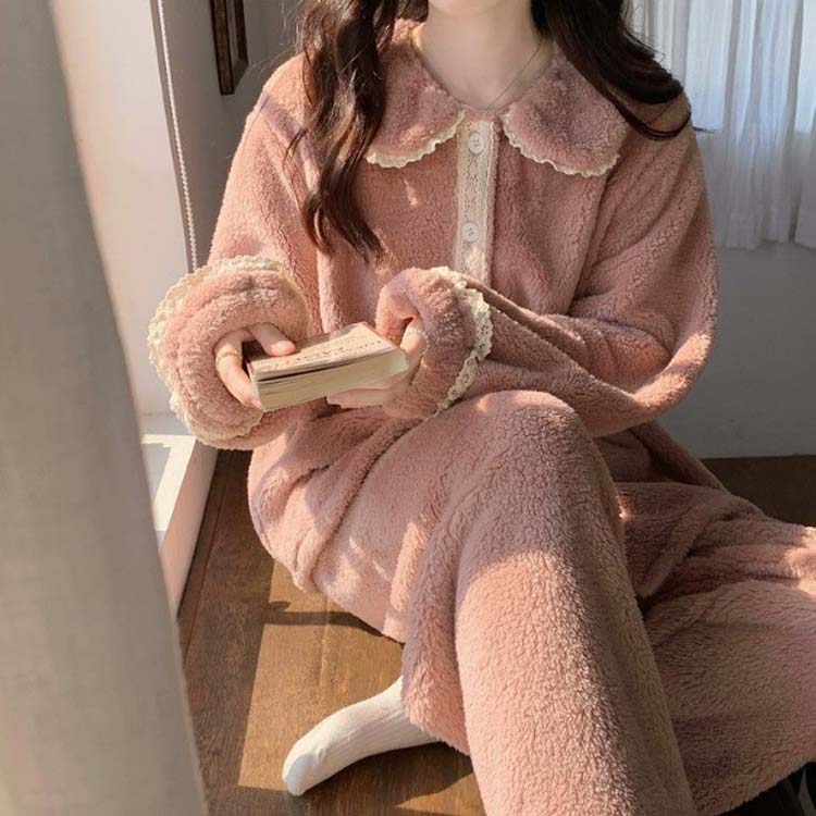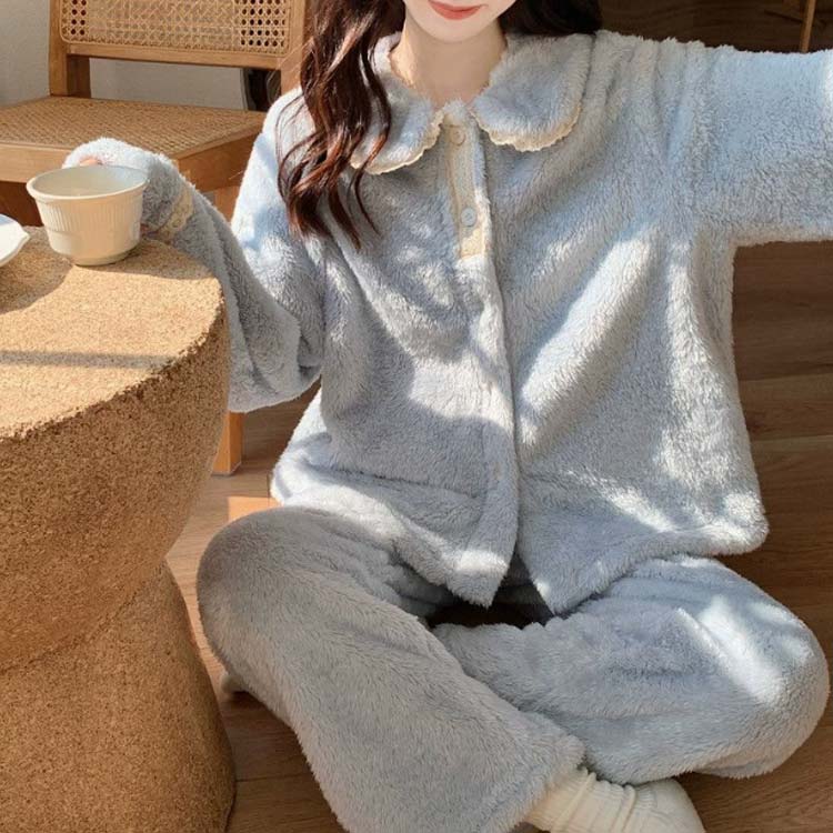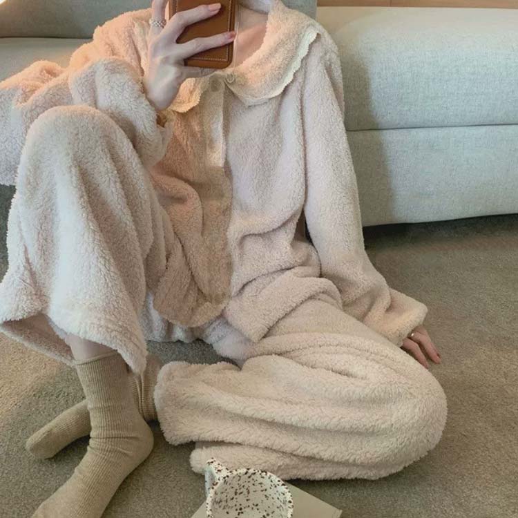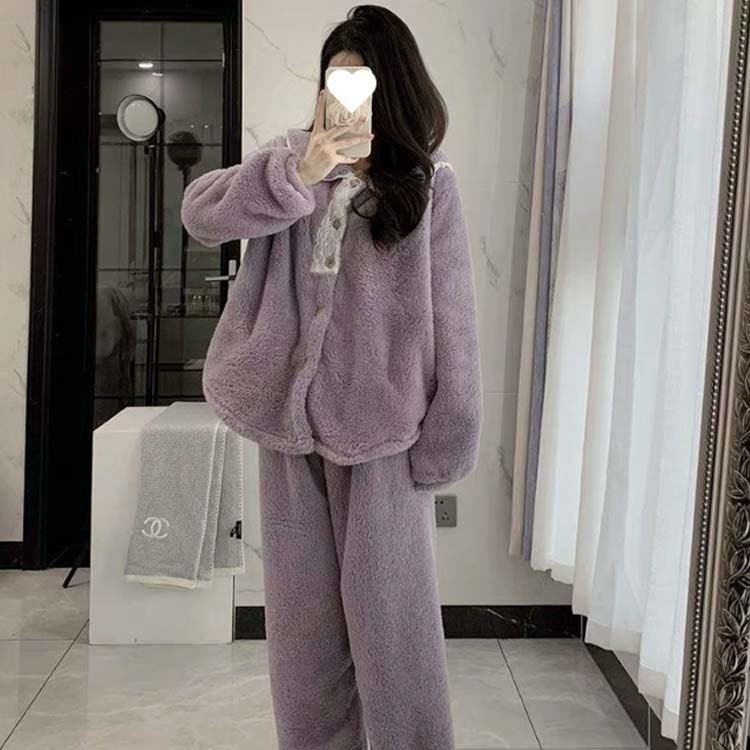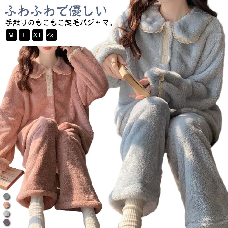 冬用 パジャマ 前開き セットアップ インナー 下着 ナイトウエア 続々登場 ピンク ブルー ホワイト パープル M L XL 2XL