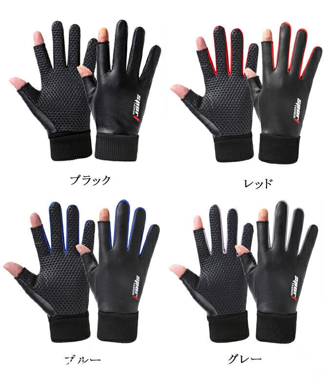 手袋 メンズ 指出し グローブ 裏起毛 スポーツ アウトドア 豊富な品揃え ブラック グレー ブルー レッド