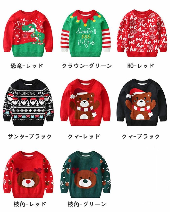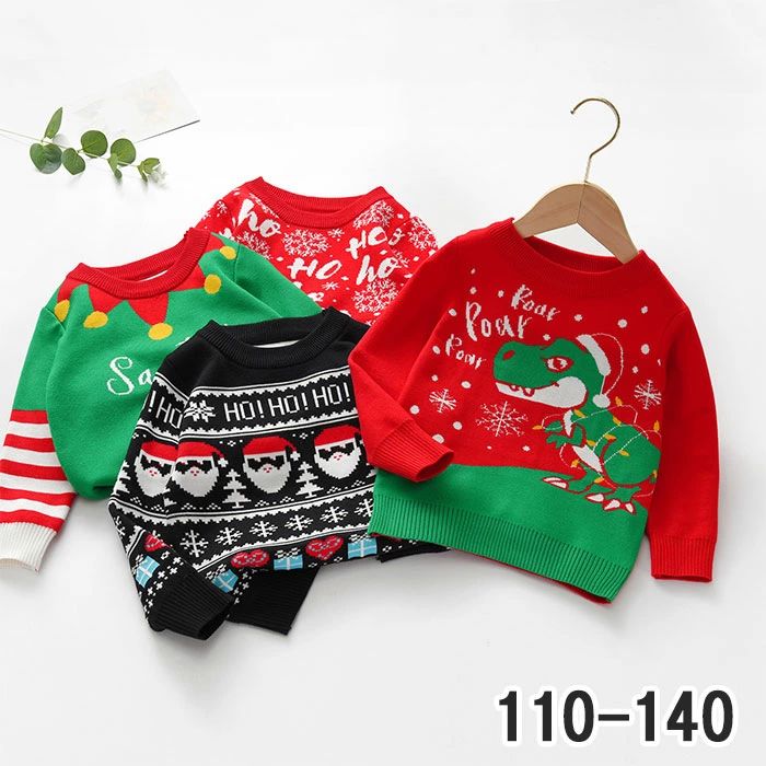 子供セーター クリスマス ニット 長袖 キッズ トップス セーター 早い者勝ち 恐竜-レッド クラウン-グリーン HO-レッド サンタ-ブラック 100(推薦身長90cm) 110(推薦身長100cm) 120(推薦身長110cm) 130(推薦身長120cm) 140(推薦身長130cm)