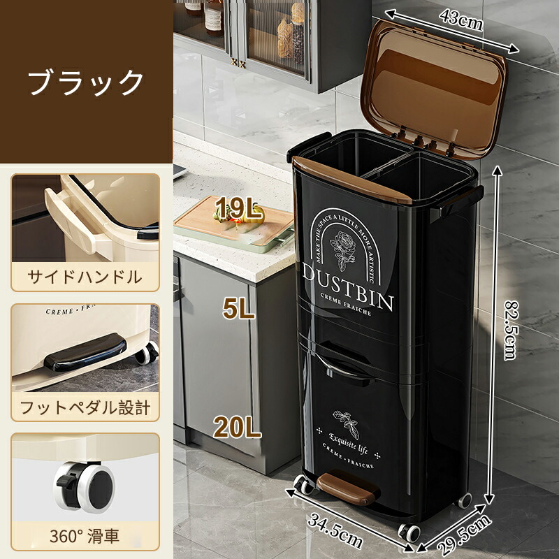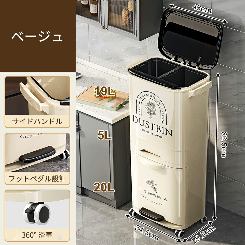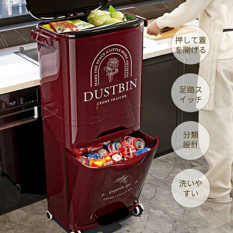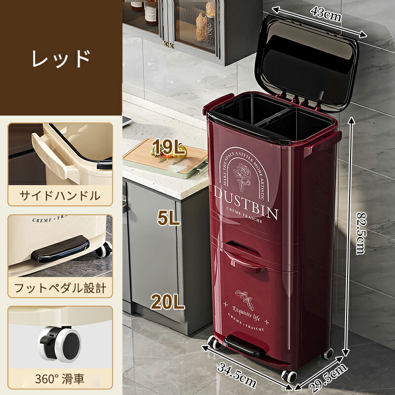 ゴミ箱 縦型分類ワゴンペール 分別ペー ブラック ベージュ レッド