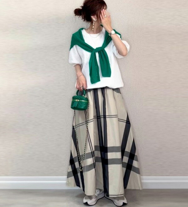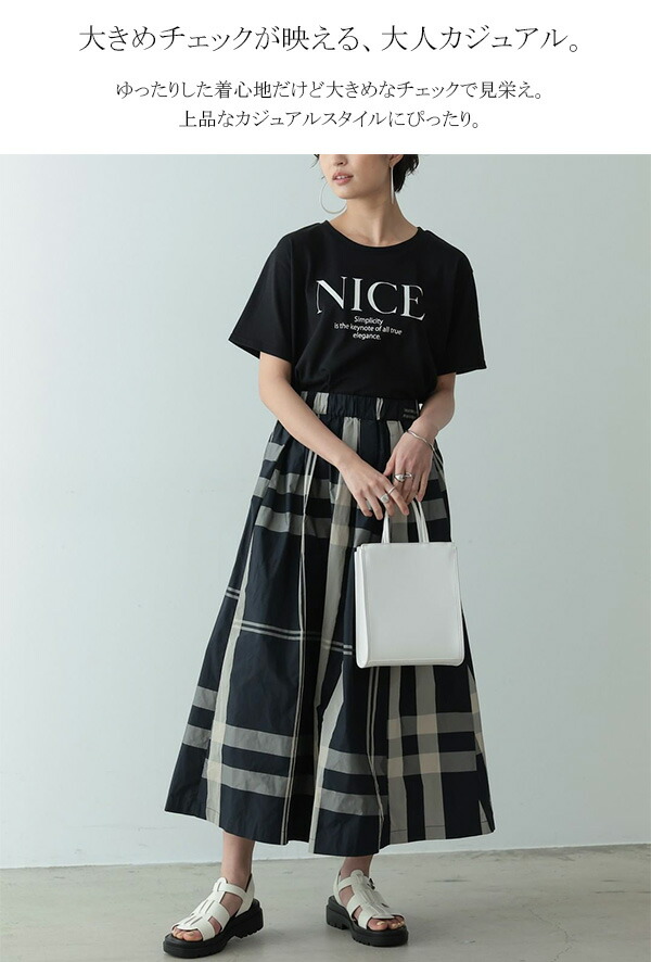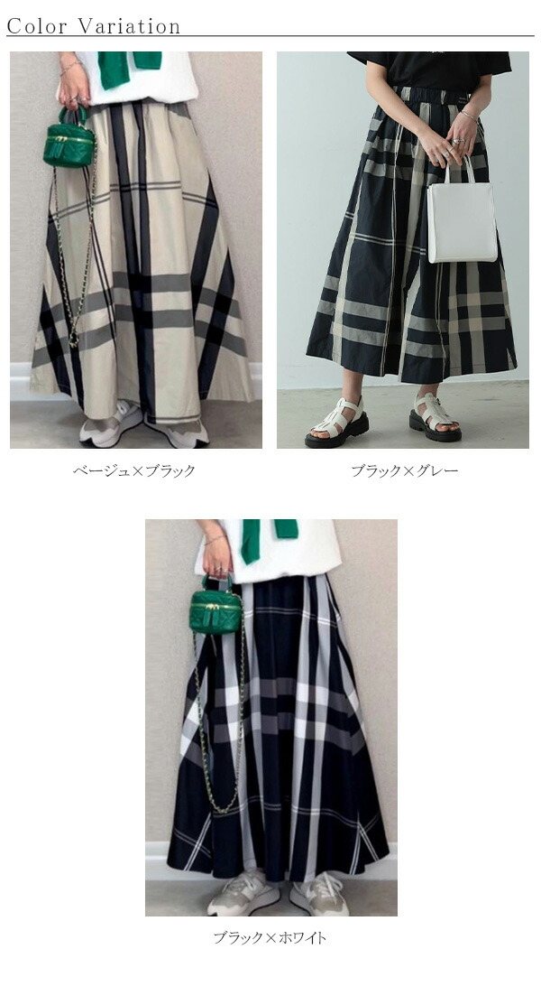 チェック ロングスカート ワイド ゆっ トップス シャツ ブラウス 新登場! 即納 ベージュ×ブラック ブラック×グレー ブラック×ホワイト