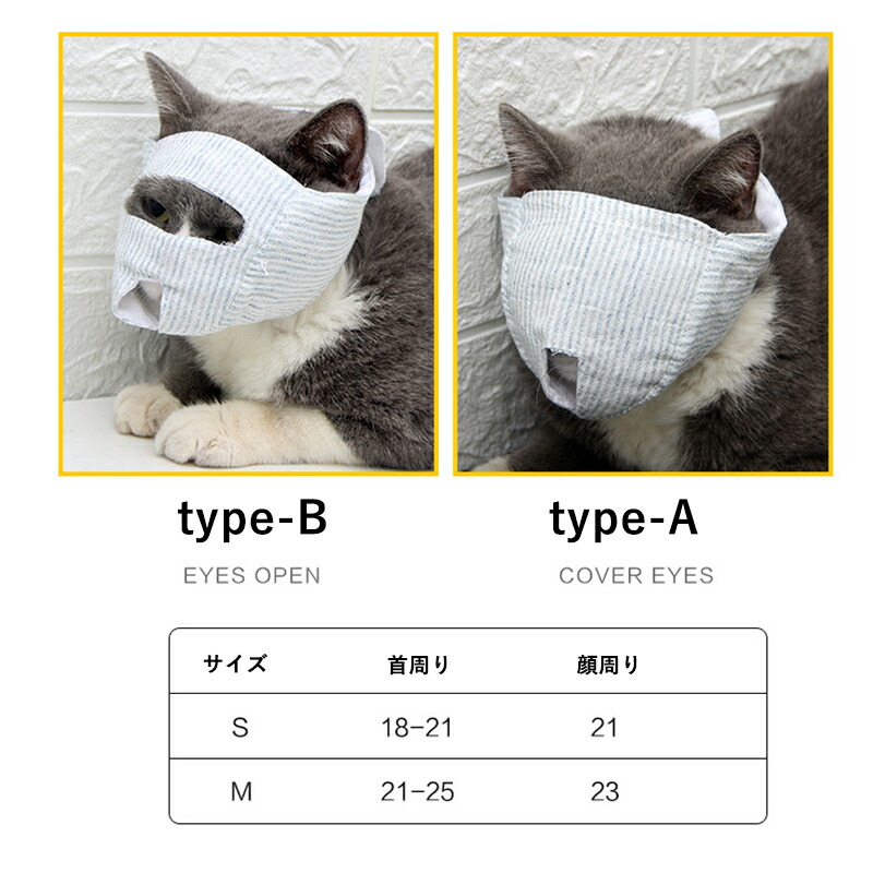 保護マスク ペット口輪 猫用 目隠し typeA typeB S M