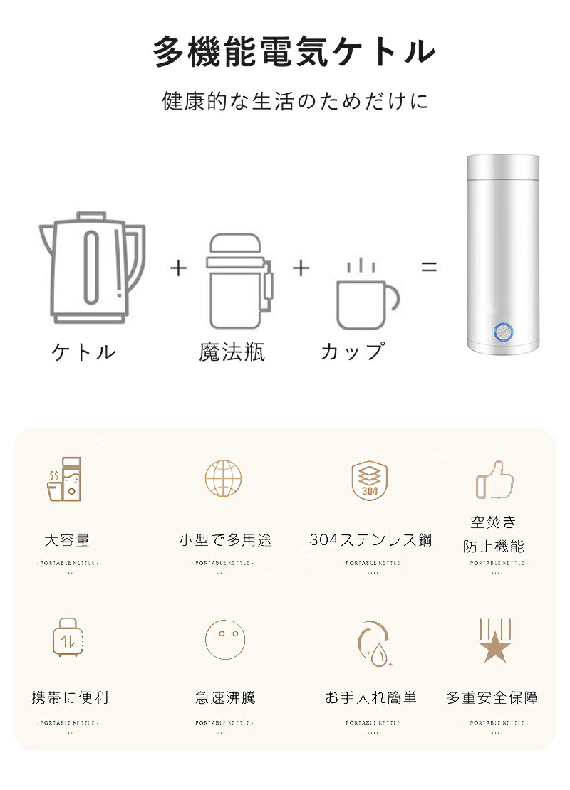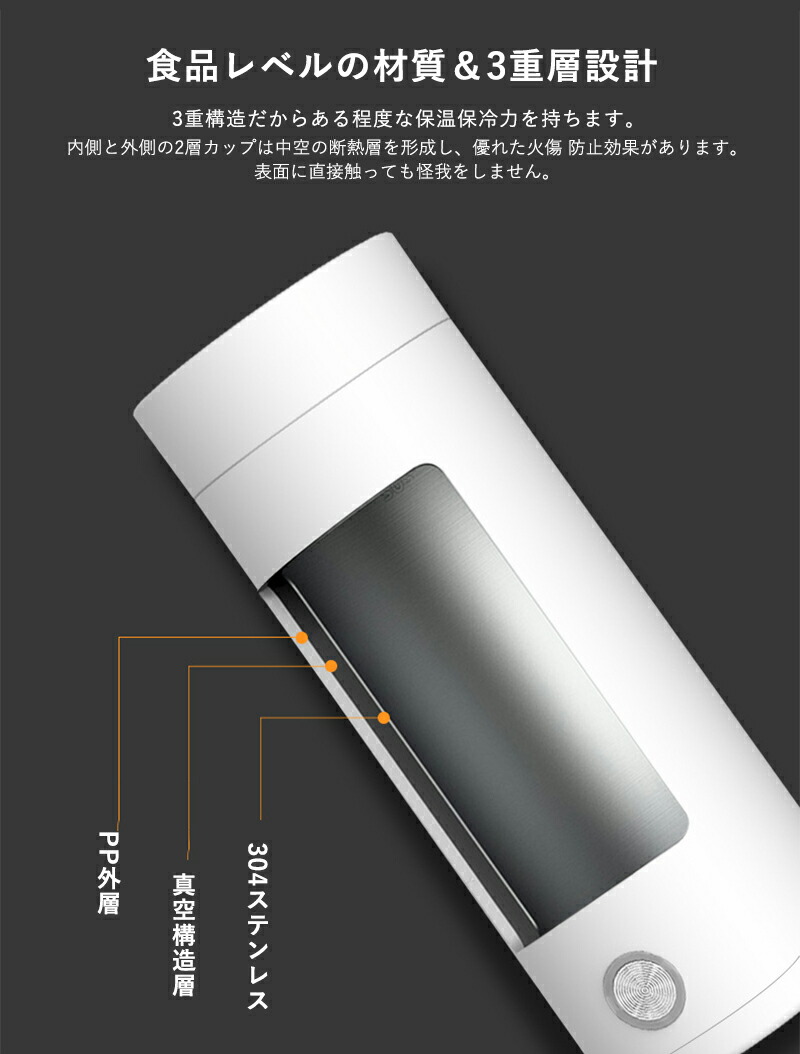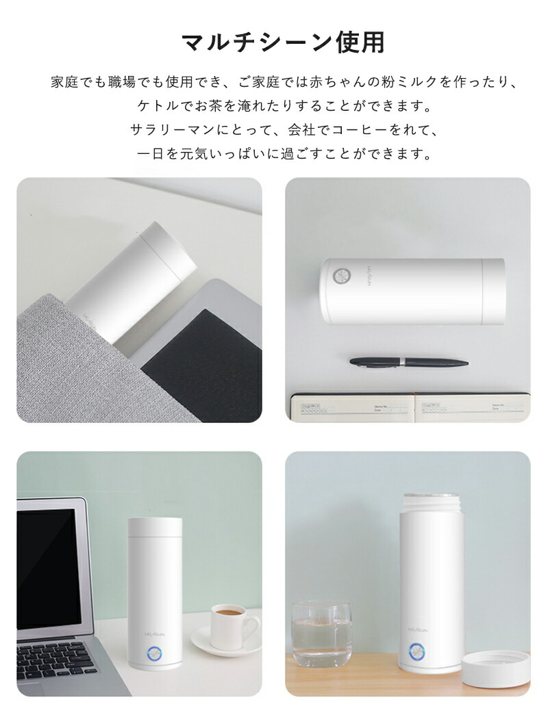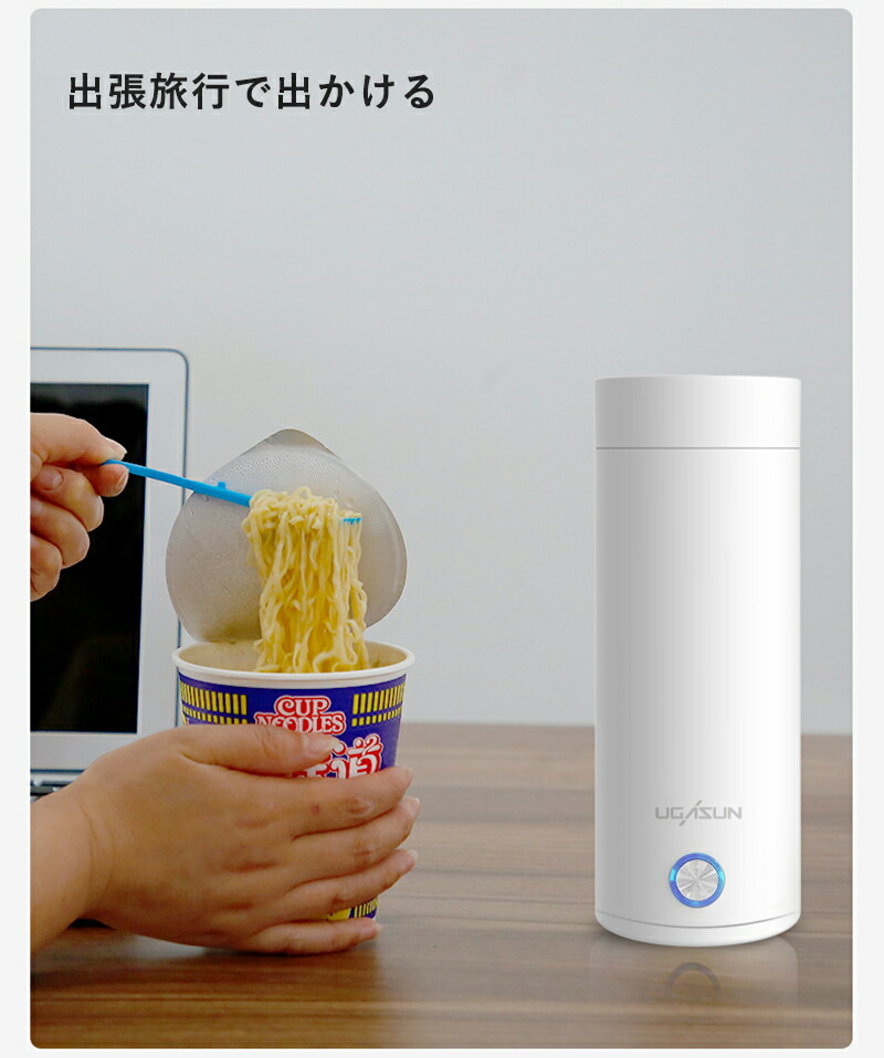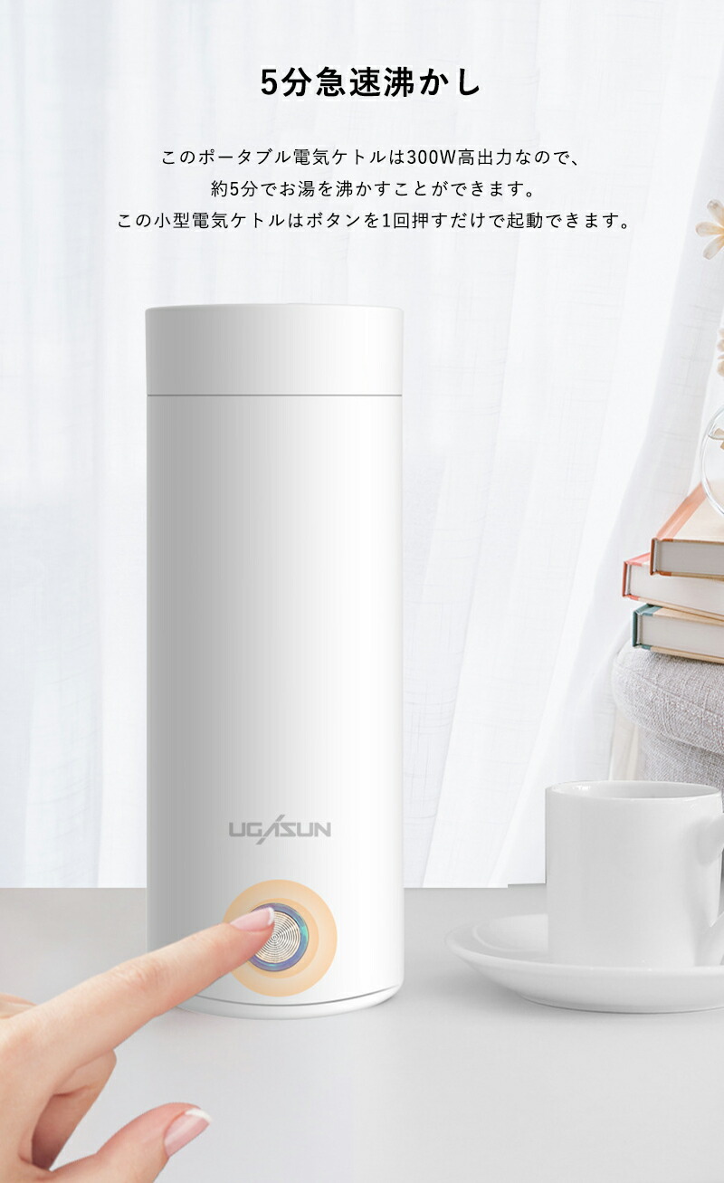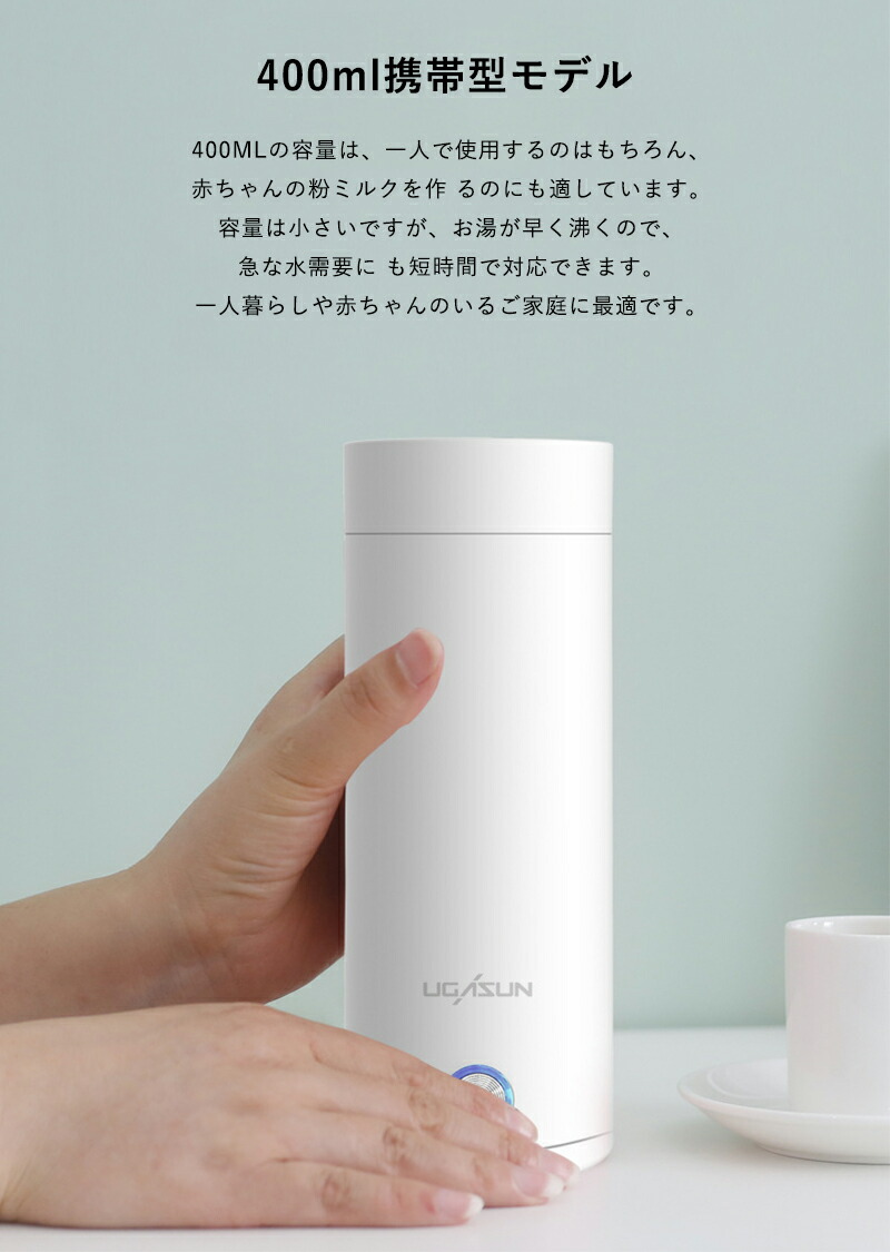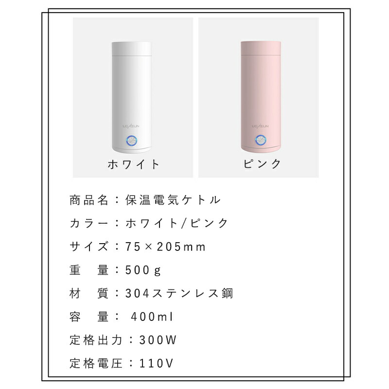電気ケトル 小型 400mL 水筒 旅 ホワイト ピンク