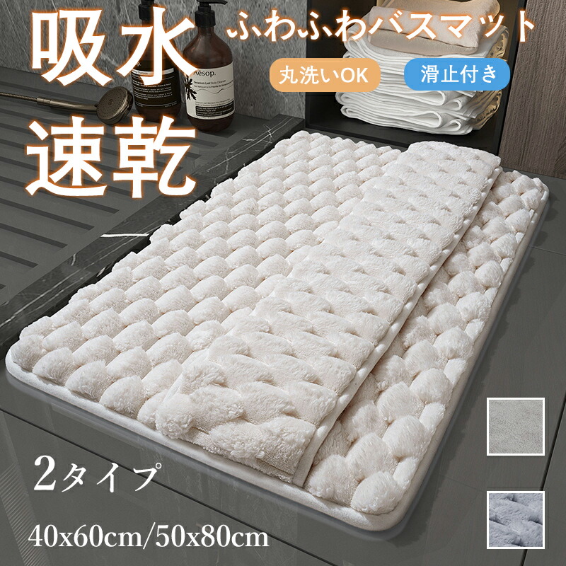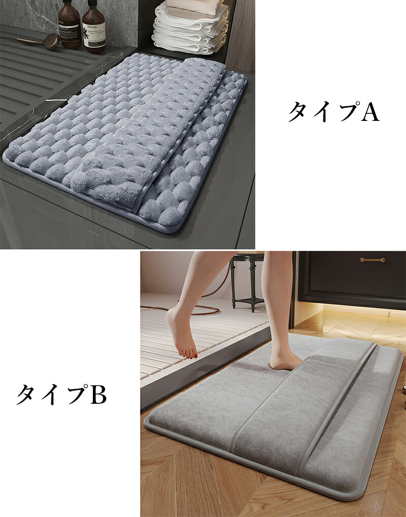 バスマット 速乾 タオル地 吸水 マイ タイプA+ベージュ タイプA+グレー タイプB+ベージュ タイプB+グレー 40*60cm 50*80cm