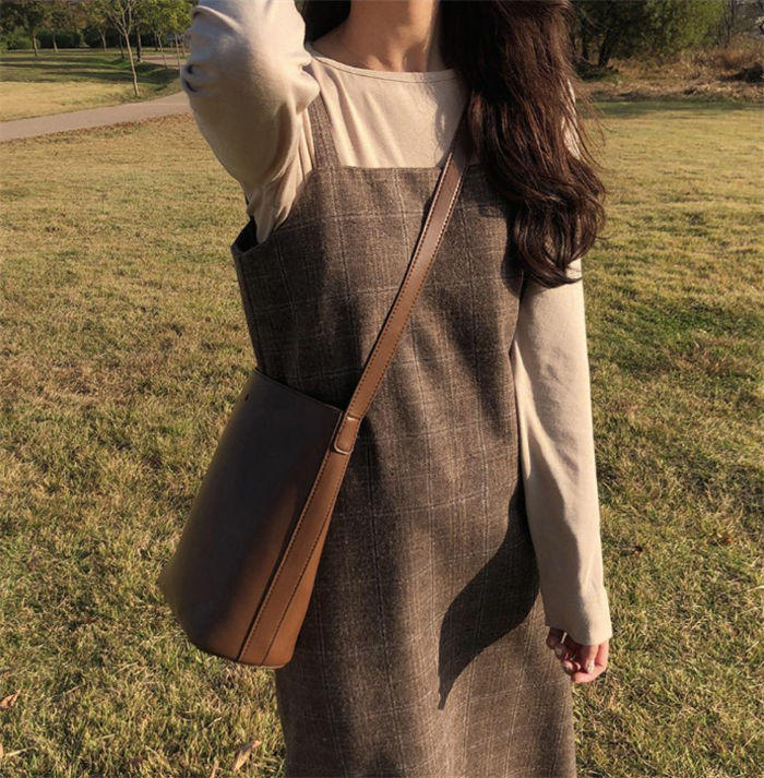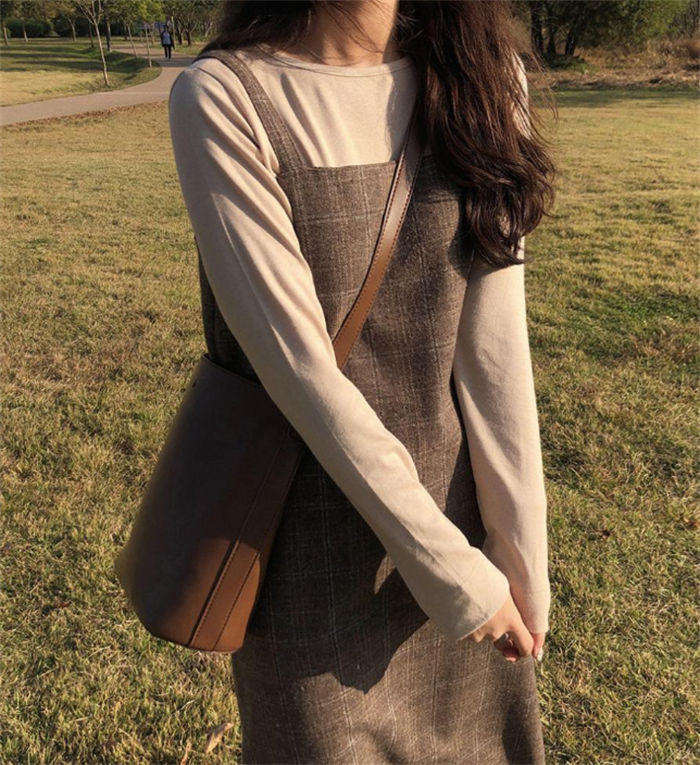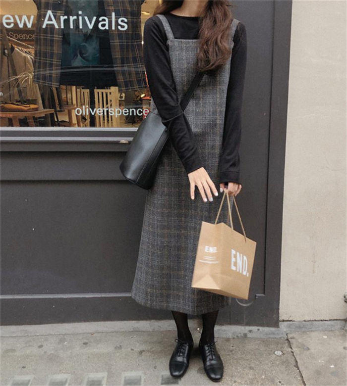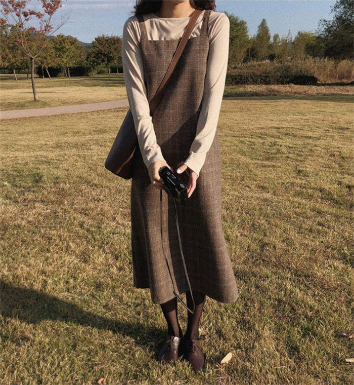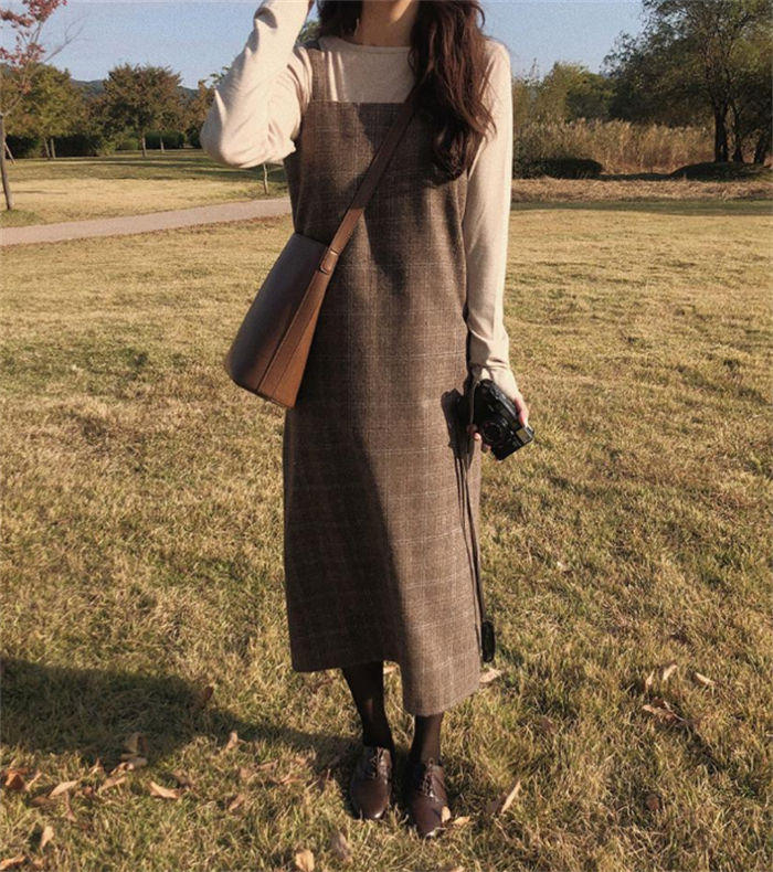 ジャンパースカート 秋 冬 ロング キ グレー コーヒー色 S M L XL