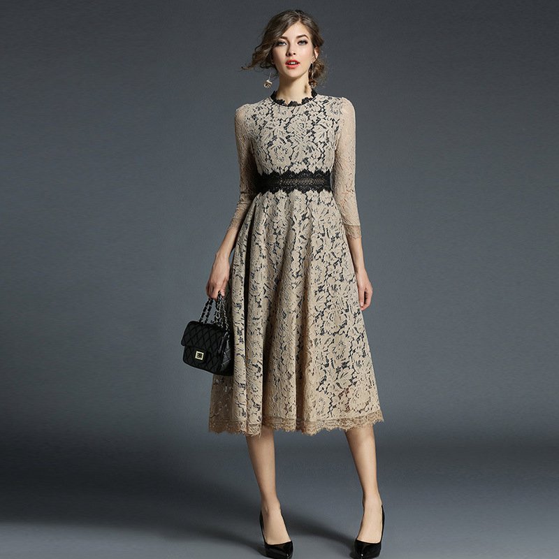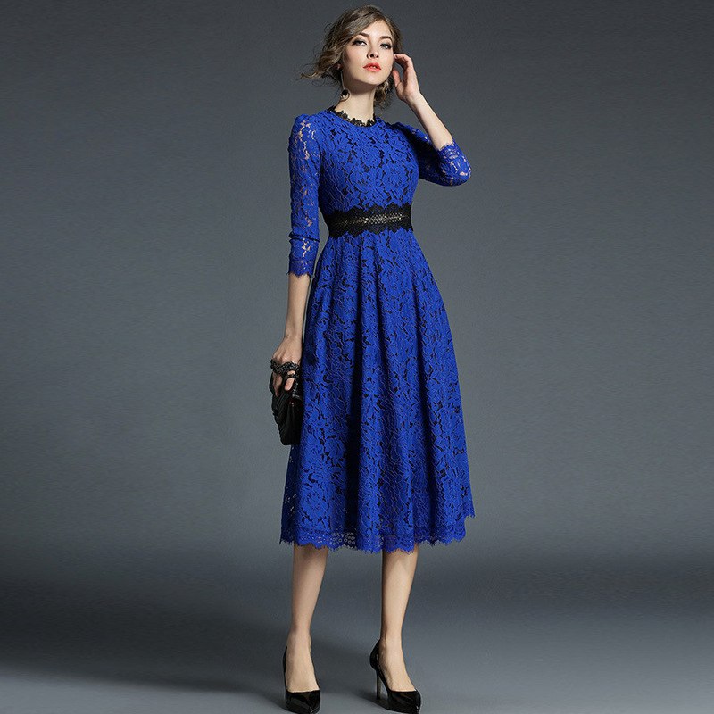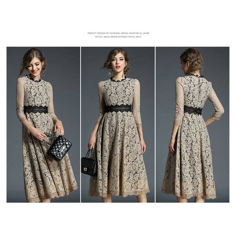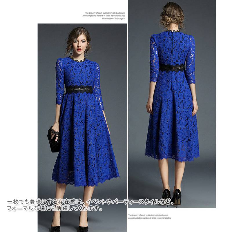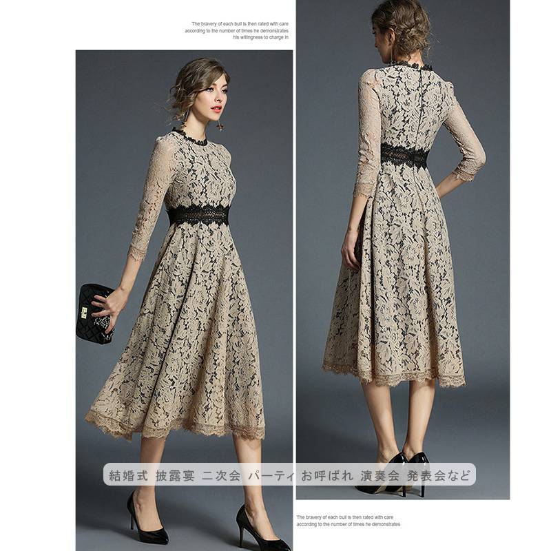 パーティードレス ミモレ丈 総レース レディースファッション 超目玉商品 ベージュ ブルー S M L XL XXL