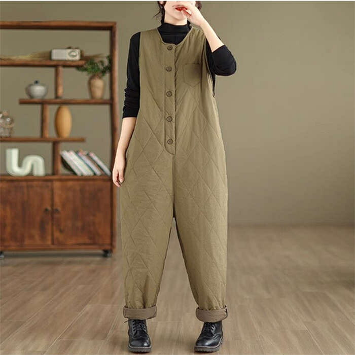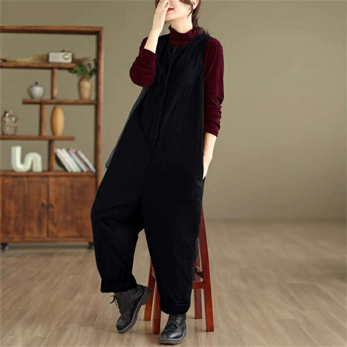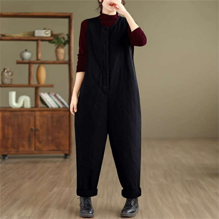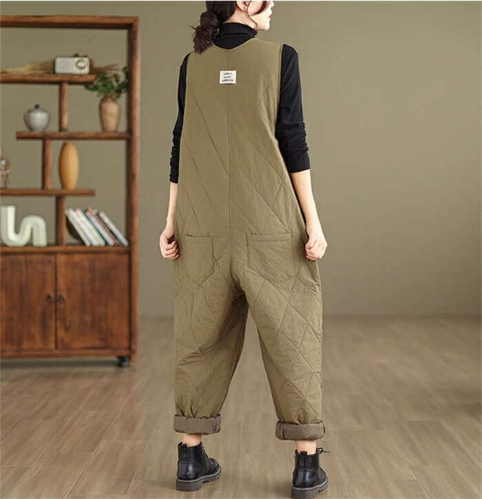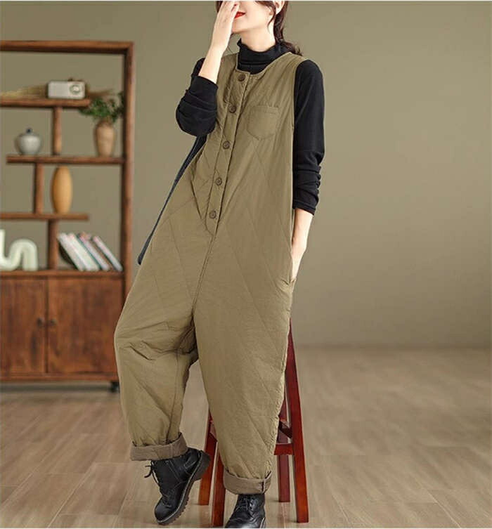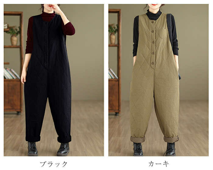 中綿入りサロペット防寒 つなぎ レディ オールインワン サロペット 続々入荷中 ブラック カーキ XL 2XL