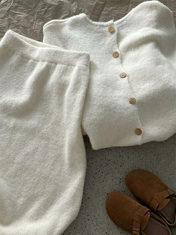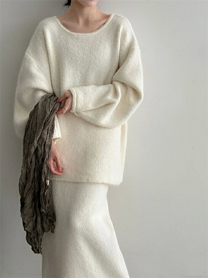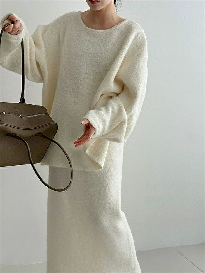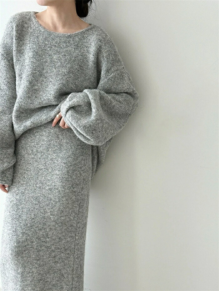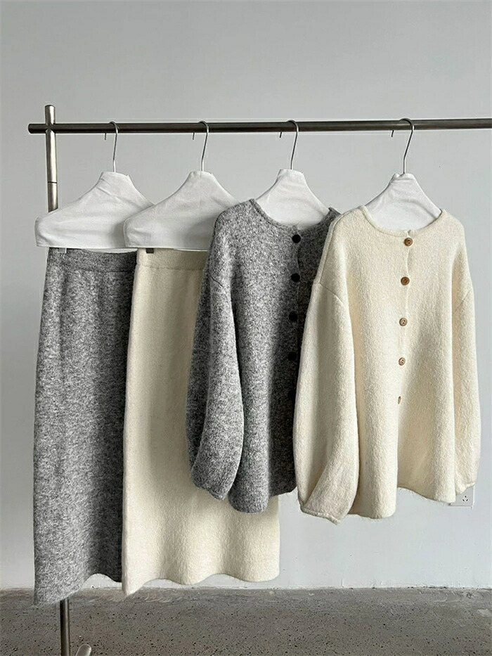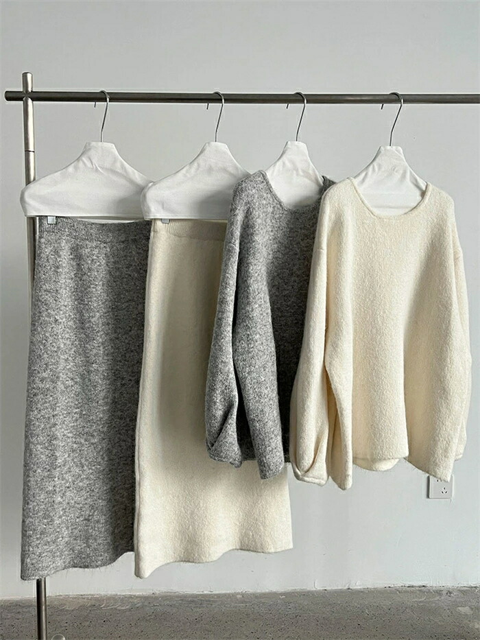 ニット セットアップ 秋 冬 レディー レディースファッション 豊富な品揃え グレー オフホワイト