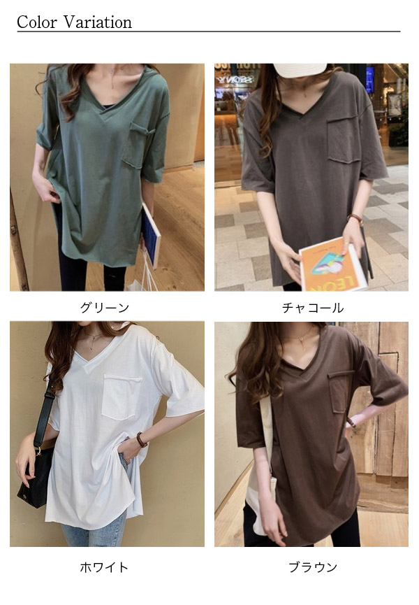 アースカラー Vネック ポケット Tシ トップス Tシャツ カットソー 通販 M(即納) L(即納) XL(即納) ホワイト チャコール グリーン ブラウン