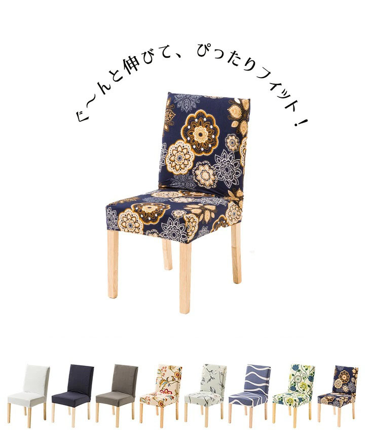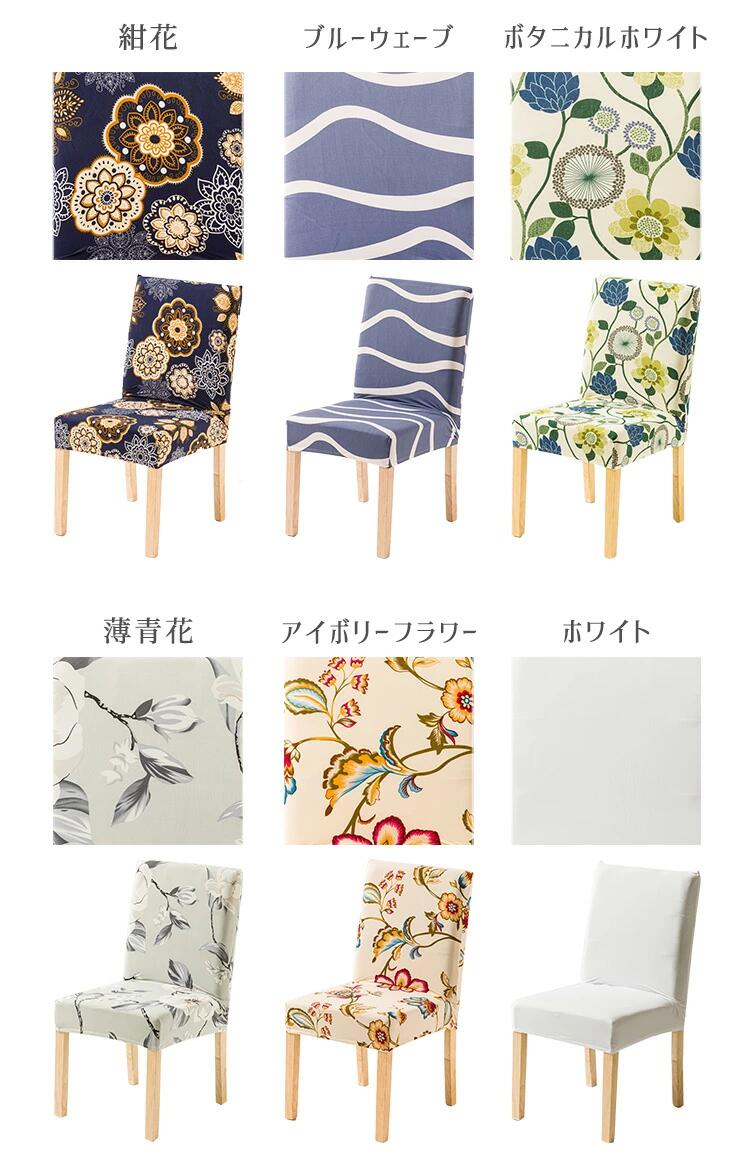 椅子カバー イスカバー 2枚セット 全 紺花 ブルーウェーブ ボタニカルホワイト 薄青花 アイボリーフラワー ホワイト グレー ネイビー ブラック アイボリー レッド ブラウン