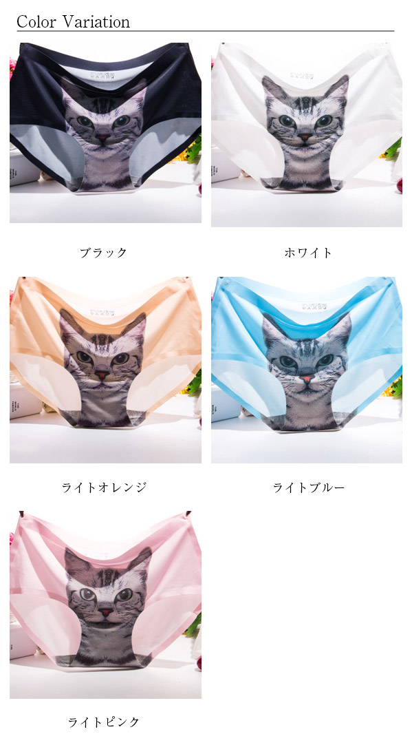 可愛い 猫 デザイン下着 ヒップハンガ インナー 下着 ナイトウエア 通販 即納 ブラック ホワイト ライトオレンジ ライトブルー ライトピンク