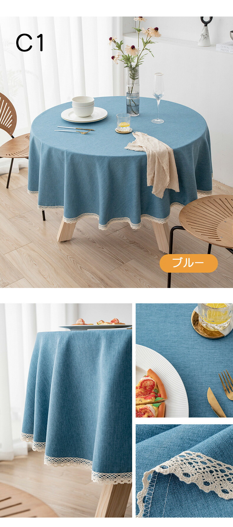 テーブルクロス 撥水加工 撥水 円形 配膳用品 キッチンファブリック テーブルクロス 豊富 C1-ブルー C2-グレー C3-ベージュ C4-イエロー C5-グリーン C6-ピンク C7-オレンジ C8-カーキ 丸形120cm 値段:2980円 丸形140cm 値段:3480円 丸形160cm 値段:4280円 丸形180cm 値段:4980円 丸形200cm 値段:5580円 丸形220cm 値段6280円 丸形240cm 値段:6980円 丸形260cm 値段:7580円 丸形280cm 値段:8180円