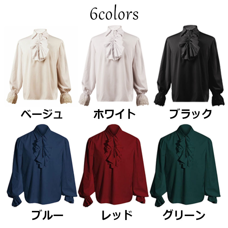 メンズ ゴシックレトロ 長袖シャツ 中 メンズファッション 新登場! ブラック ホワイト ベージュ レッド ブルー グリーン S M L XL 2XL