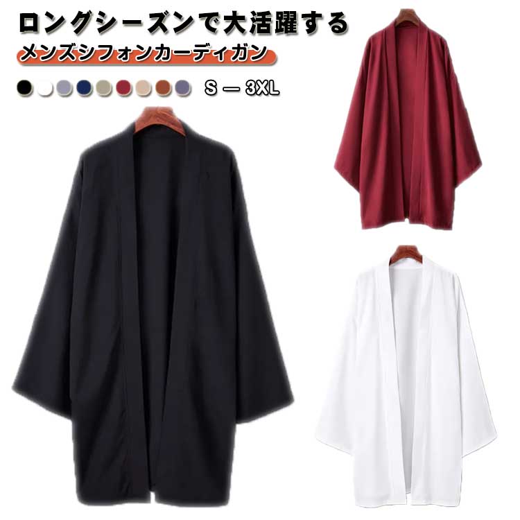 カーディガン ロング丈 メンズ ロング メンズファッション 新作 ブラック ホワイト ライトグレー ブルー アイボリー ワインレッド アプリコット オレンジ ダークグレー S M L XL 2XL 3XL