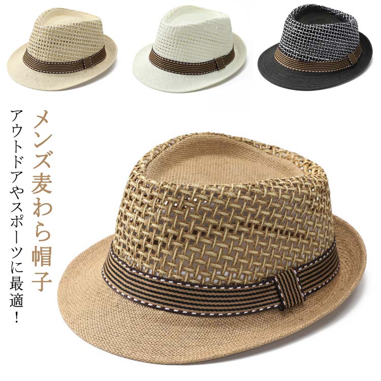 麦わら帽子 メンズ ストローハット 春 帽子 メンズ帽子 麦わら帽子 早い者勝ち ベージュ ホワイト アイボリー ブラック