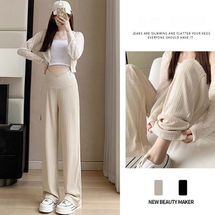 マタニティパンツ ストレッチ ワイドパ マタニティ ママ マタニティウエア 授乳服 ボトムス パンツ 豊富な品揃え ブラック ベージュ M L XL 2XL 3XL