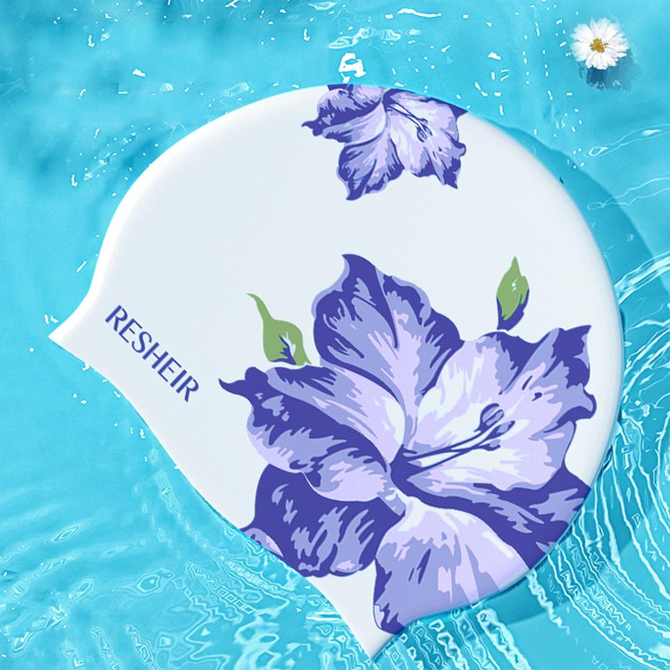 美しい花柄のシリコンスイムキャップ