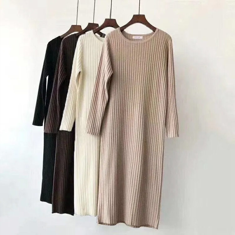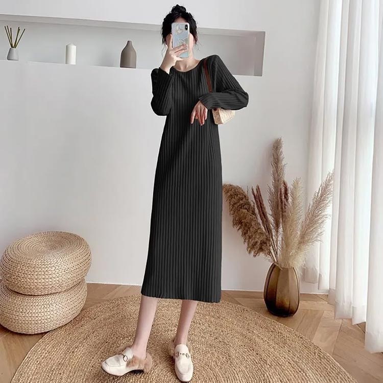 長袖 ニット ワンピースマキシ丈ワンピ レディースファッション 新登場! ブラック アイボリー ブラウン ベージュ S M L