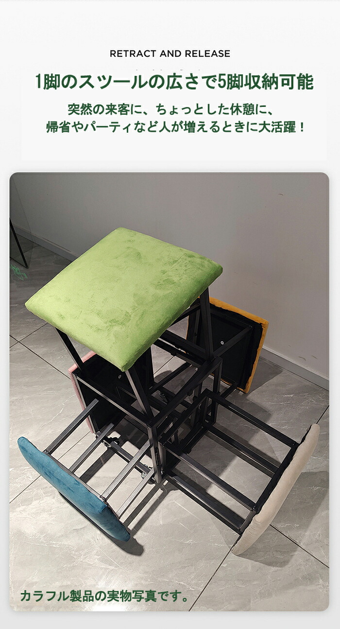 コンビネーション スツール 5脚セット フランネル ナッパレザー オレンジ ブラウン ブルー グリーン ピンク グレー カラフル
